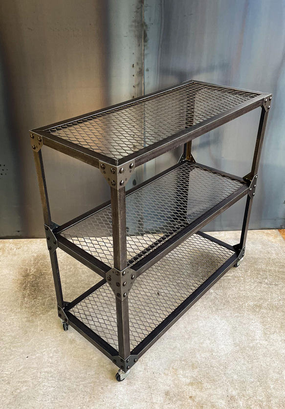 - 棚・ラック・シェルフ > スチールラック・メタルラック > 【インダストリアル】アイアンフレーム ガラス天板 3段 飾り棚 ラック 店舗什器 インダストリアル】アイアンフレーム ガラス天板 3段 飾り棚 ラック