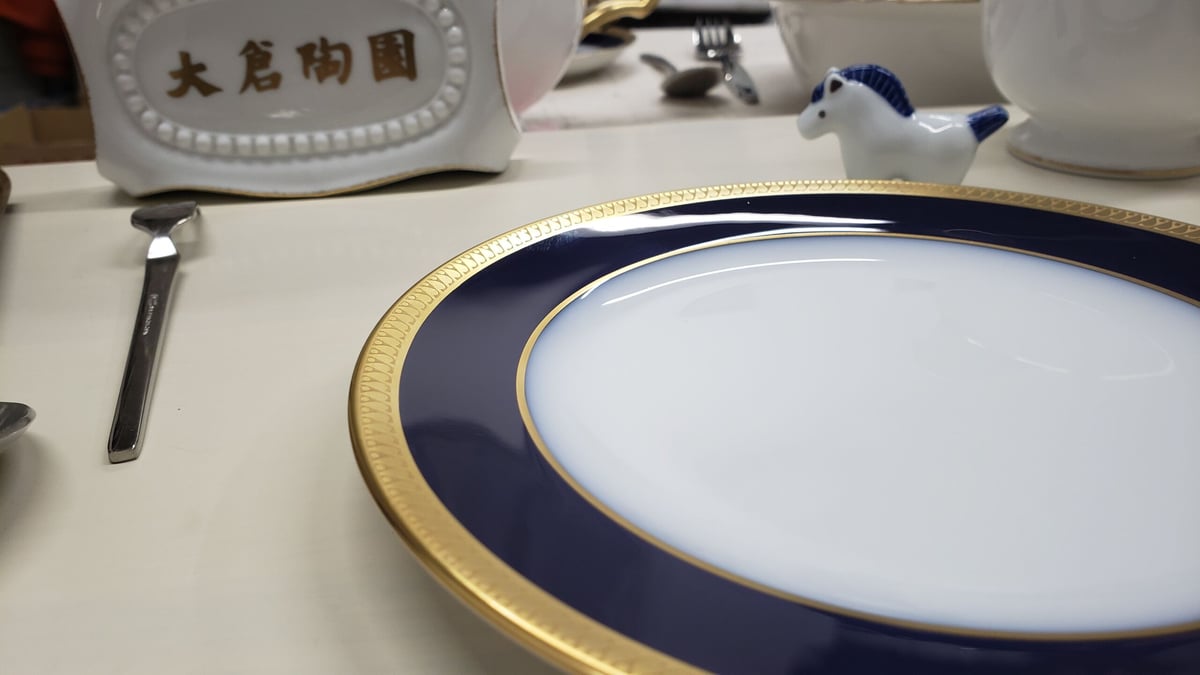 | 商品の特徴 | fit=scale-down,w=1200。片葉金蝕 カップ&ソーサー。大倉陶園 瑠璃片葉金蝕 17cmパン皿 ( ギフトボックス入り デザート皿。大倉陶園のネイビーとゴールドが美しいデザインのプレートです- 数量: 4枚ご覧いただきありがとうございます。長く保管していましたが、使用頻度は少ないです。□予約□ ルリ片葉金蝕 23ピースティーセット | ||