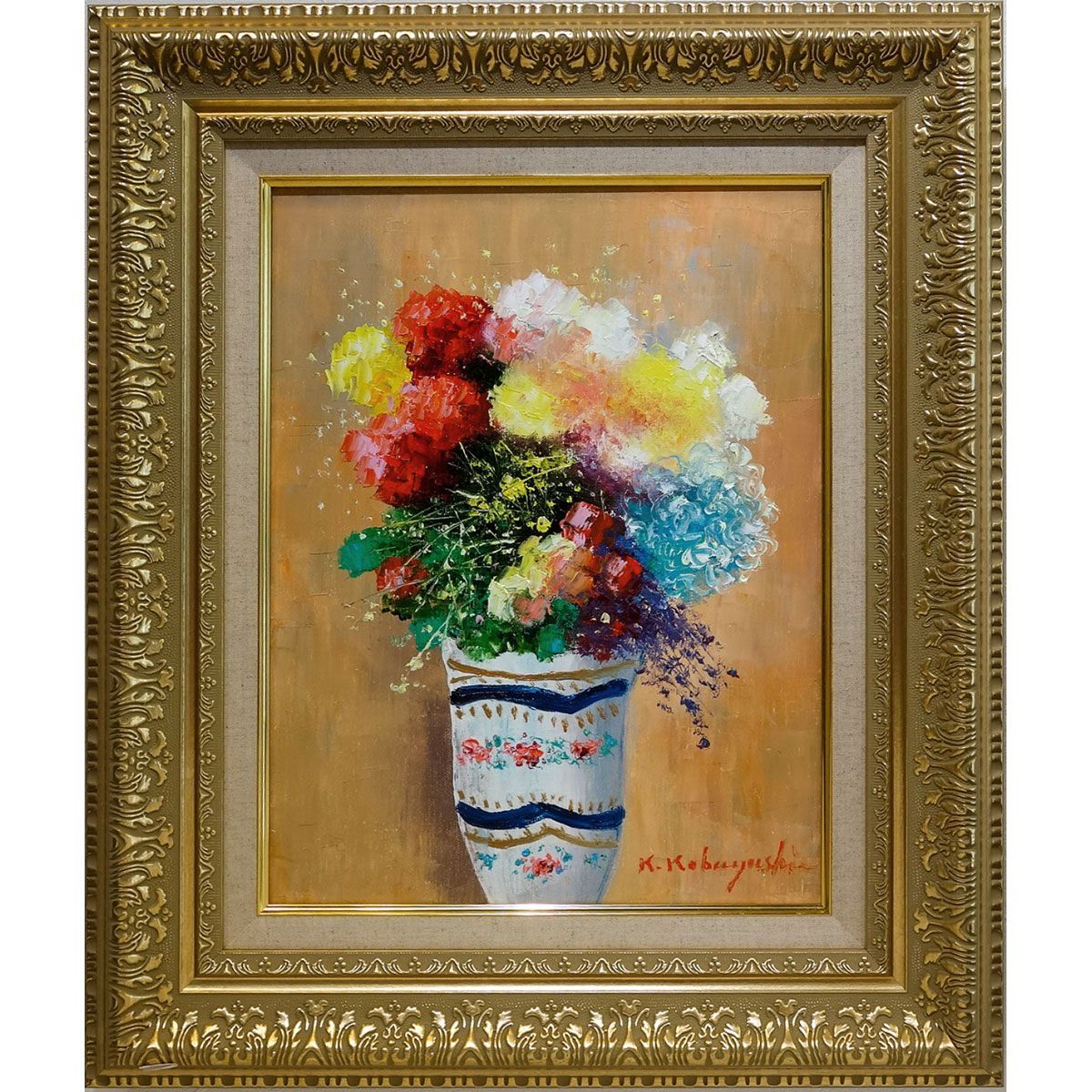| 商品の特徴 | 黄色いバラの油彩画 額付き SOO作 10号 額外寸縦53.5×横73.0㎝ 黄色い。kakejiku_ya-3601。油絵 Soo 黄色いバラ 絵画 油絵 黄色いばら (SOO) 【肉筆】【油絵。SOO(Jung Soo Kyung)肉筆画(手描き作品です)黄色いバラの花束を描いた油彩画で、緑と金の装飾フレーム付き額縁サイズが縦53.5cm×横73cmと、丁度良い大きさで綺麗な黄色のインパクトが素敵な作品です額縁もモスグリーンの色と木彫りの縁でとても柔らかく豪華な印象が見られます。お部屋を明るくしたい方、目の保養にも良いかと思います。どなたかいかがでしょうか本体はピンで固定されており、ガラス越しに写真を撮った為、反射にご理解下さい。大事に眺めてきた作品ですが、部屋の模様替えと断捨離の為に出品させて頂きました【画 題】黄色いばら ※肉筆作品※【解 説】踊るように軽やかなタッチで描かれた、黄色いバラの花「金運上昇」効果【寸 法】⭐︎額寸(約)縦53.5cm×横73cm⭐︎本体サイズ縦34.3cm×横53.7cm 10号⭐︎中枠サイズ縦39cm×横58.5cm周囲の 額縁厚み1.3㎝(高い所は約2.5㎝)【作 家】SOO(Jung Soo Kyung)鄭秀亰(Jung Soo-Kyung)1959年 ソウル生まれ韓国美術大賞展 入選ソウル具象 5人展 出品現代美術際 入選韓国自然16人展 出品【特 記】肉筆画・油絵・額付- 作品名: 黄色いバラの花束- 技法: 油彩- フレームの色: 緑と金の装飾- サイズ: 額装された状態での表示- アーティスト名: Sooご覧いただきありがとうございます。しっかり包装し、安全に送らさせて頂きます。その為発送まで2.3日時間を頂く場合がありますが、出来るだけお早い対応に気をつけます。黄色 花束 鄭秀京 油彩 絵 絵画 黄バラ 薔薇 バラ 花 美術品 額装 韓国 ソウル ばら。油絵 油彩 油彩画 絵 絵画 【黄色薔薇】 油絵 油彩 油彩画 絵 絵画 絵。伊藤深水 A-18。【遊鯉図】佐野光穂 2639 コイ 掛け軸 肉筆。焔仁 そごう美術館横浜展と奈良展に出品された作品タイトル「あざみ」50号。西澤栄一 油絵 風景画。東郷平八郎賛 八木岡春山画 鍾馗図 大正十三年作 掛軸 | ||