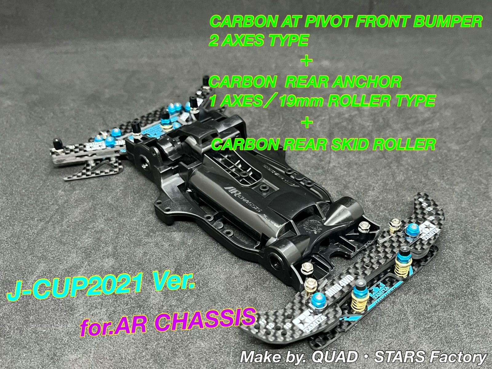 | 商品の特徴 | ミニ四駆・AR用】2軸ATピボット+1軸リヤアンカー+リヤスキッド。ミニ四駆・MA用】2軸ATピボット+1軸リヤアンカー 2023/フルカーボン。ミニ四駆・ARシャーシ用】2軸ATピボットバンパー+1軸リヤアンカー+。☀️お得な【まとめ買い申請】募集中☀️⚠️こちらのカーボンユニットは、ミニ四駆のセットアップにある程度慣れた【中級〜上級者向け】のカスタムパーツです⚠️◉2軸ATピボットバンパーのレシピ・ARシャーシ/ブラック ×1・リヤブレーキステー/J-CUP2021 ×1・フロントワイドステー ×3・マルチ補強プレート ×1・マルチ強化プレート ×1【スライドダンパー用スプリング(4種類付属)】◾️ピボット部分:ハード/シルバー ×2◾️2軸部分: ミディアム/ゴールド ×2【交換用】◾️ソフト/ブラック ×2◾️スーパーハード/シルバーメッキ ×2◉1軸リヤアンカー/19mmローラー対応のレシピ・リヤブレーキステー/J-CUP2021 ×1・リヤワイドステー/J-CUP2024 ×2・直カーボン ×3・キャップスクリュー/2×20.3mm ×1◉ローラーアンダーガード・リヤブレーキステー/J-CUP2021 ×2・アルミスペーサー/3mm ×4◉リヤスキッドローラー・リヤブレーキステー/J-CUP2021 ×1・830ベアリング/AO-1008 ×2・両軸モーターピン ×1【ダンガン用タルバネ(2種類付属)】◾️1軸部分:ハード/シルバー ×1【交換用】◾️ソフト/ブラック ×1⚫︎カーボンユニットの重さ:約45.5g ※シャーシ含む【追加オプション】①フロント提灯/カーボン 3,998円②ピボット稼働部分/段下げ3mm厚加工 2,998円③ARシャーシ用・Aパーツセット 598円✅ロックナットのカラー変更など、その他のご要望も【コメント欄】から承ります^ ^↓↓よろしければ他にも出品していますのでこちらも併せてご覧ください↓↓#QUAD・STARS/ARシャーシの商品一覧はこちら#QUAD・STARS/カーボンの商品一覧はこちら↑↑タップでミニ四駆のみの見やすいページに飛びます↑↑【ご案内】・タミヤ純正パーツのみを取り扱っておりますので、公式レースでも安心してご利用いただけます。ミニ四駆・AR用】2軸ATピボット+1軸リヤアンカー+リヤスキッド。・カーボンユニット、シャーシ以外は別売ですm(_ _)mNo.8-37 | ||