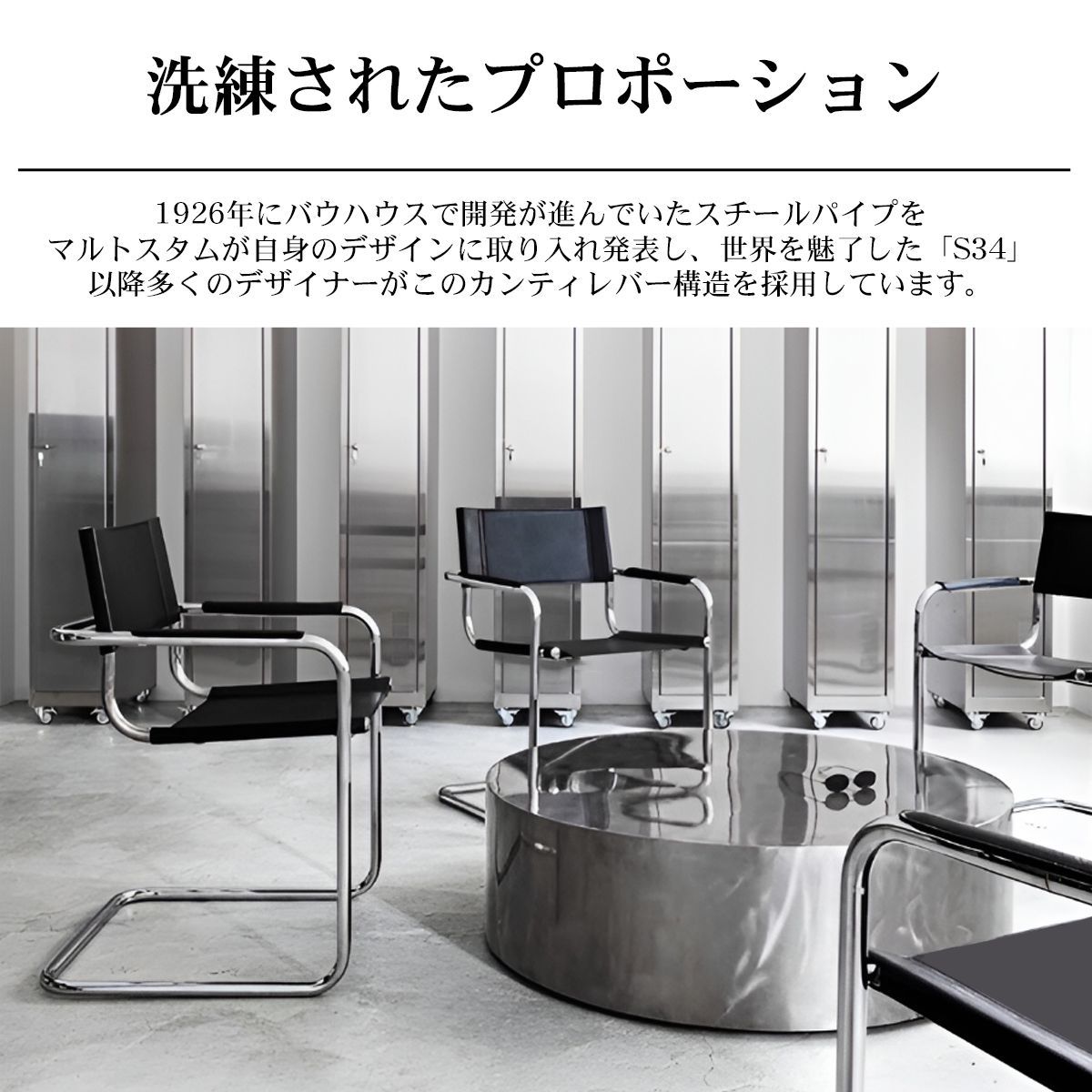 | 商品の特徴 | マルトスタム S34 カンティレバーチェア 【公式通販】。マルトスタム S34 カンティレバーチェア 【公式通販】。楽天市場】マルトスタム カンティレバーチェアb アーム 本革 椅子。マルト•スタム カンティレバーチェアでございます。この度、引越しに伴いまして手狭になり部屋に置けない状態になってしまい、出品する次第となりました。座面、背、アーム(肘掛け)の素材は本革です。写真 にてご確認ください。サイズ W60×D56×H81cm 座面高44cm素材 革、スチールクロムメッキ仕上げ カラー ブラックMade in Italy イタリア製スティールライン社製 DESIGN素人採寸ですので誤差はお許しください。シンプルなフォルムで美しく無駄を省いた構造で片側だけで全体を支える構造を持ったキャンティレバー構造は 背面側の脚がないため座った時に体重で座面が適度にしなります。カンティレバー チェア アーム レザー マルトスタム。購入して以来、応接間にありましたが来客も少なく使用される事がほとんど無い美品です。HPY DC DR 12脚 ダイニングチェア グレー。HPY DC DR 2脚 ダイニングチェア ブラウン。ユーズド商品です、使っていただける方がおられるのなら宜しくお願い致します。HPY DC DR 8脚 ダイニングチェア グレー。良品【 柏木工 】 ウィンザーチェア。※ 座面・肘掛け・背もたれ・背面に経年による小さな革のひび割れ、角部等塗装の剥がれ、脚部に小さなサビ等がございます。最終値下げ リボ RIBO バランスチェア イージー 姿勢矯正椅子。HPY DC DR 12脚 ダイニングチェア ブラウン。新品購入当より約25年が経過していますが状態が良いと思いますユーズド、ビンテージ品にご理解のある方にご検討いただきますようお願い申し上げます。ワイヤーチェア ビキニパッド DKR イームズ イエロー ヴィトラ。HPY DC DR 6脚 ダイニングチェア ブラウン。商品概要:バウハウスを代表する建築家マルトスタム(Mart Stam)が1926年に考案したS33 カンティレバーチェアです。専用出品 辻木工x2脚。無印良品 ハイバックリクライニングソファ。動くとイスが程よくしなり身体を受け止めてくれます#アームチェア#カンティレバーチェア#カンチレバーチェア#マルトスタム#martstam#インダストリアル#バウハウス#ヴィンテージチェア#マルセルブロイヤー#ミッドセンチュリー | ||