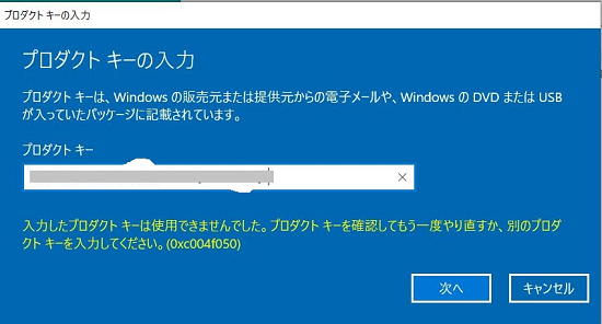 | メーカー名 | c588e2fdbefd | ブランド名 | プロダクトキーを入力するとどのようなメッセージが表示されますか? Windows10homeからproへのアップグレード |