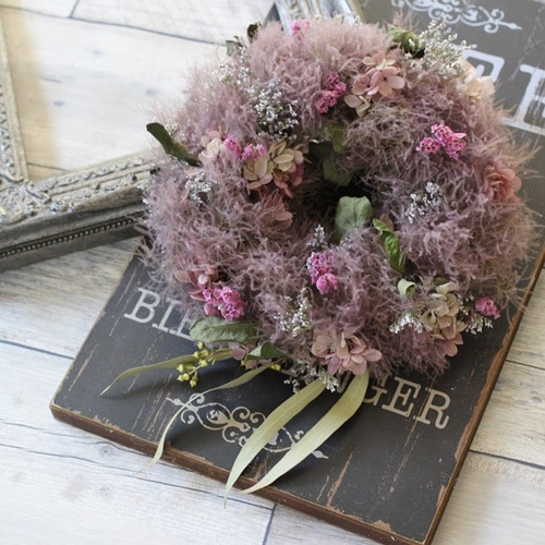 スモークツリーのドライフラワーリース 季節の花材のインテリア スモークツリーのドライリース リース petit chocolat 通販 7692458