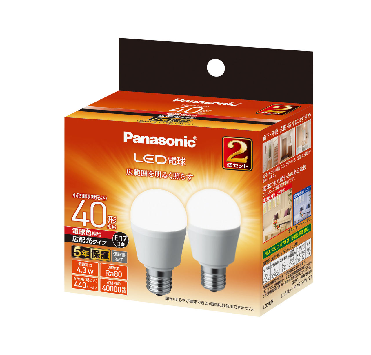 【未使用品】 Panasonic パナソニック 蛍光灯 25本入り 電球色 概要 LED電球 4.3W 2個セット(電球色相当) LDA4LGE17ESW2T | LED電球
