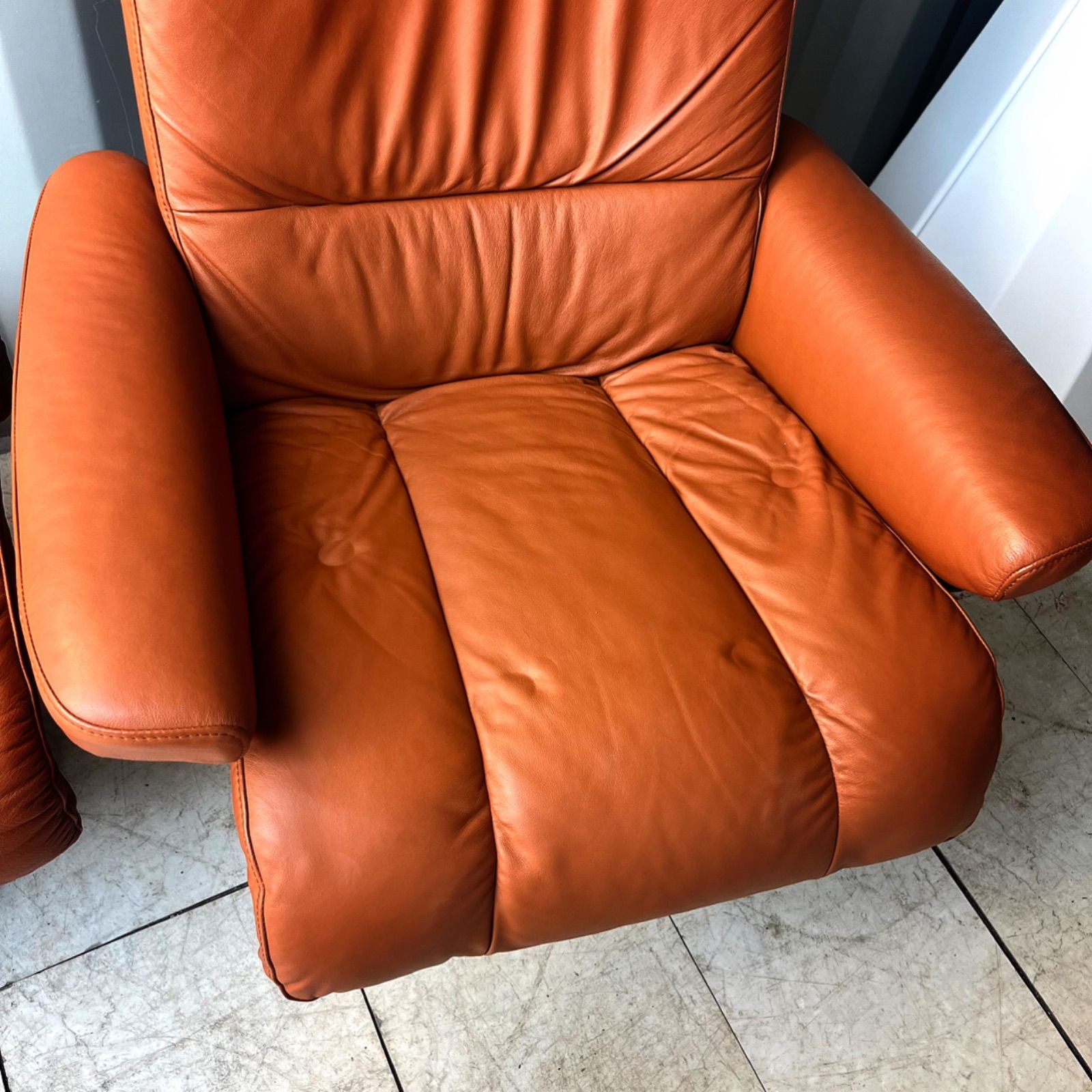 - ソファ・ソファベッド > 1人掛けソファ > 取付無料!エコーネス ストレスレス 本革オレンジリクライニングチェア・オットマン 取付無料!エコーネス ストレスレス 本革オレンジリクライニングチェア