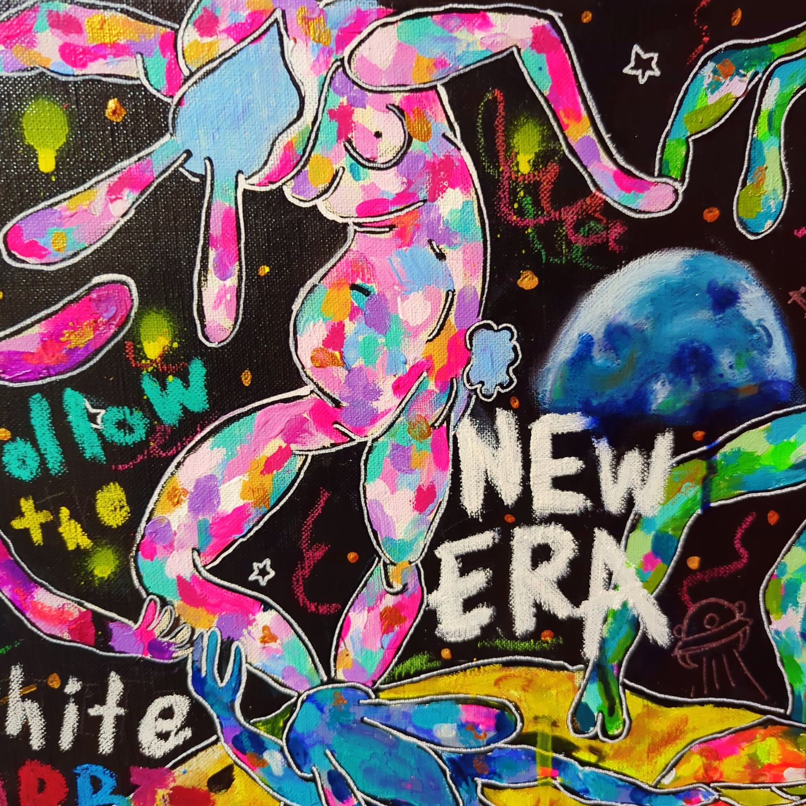 - 美術品・アンティーク・コレクション > 絵画 > 【インパクトアート】月の裏側でダンスするうさぎの絵【F8号】 インパクトアート】月の裏側でダンスするうさぎの絵【F8号】 - メルカリ