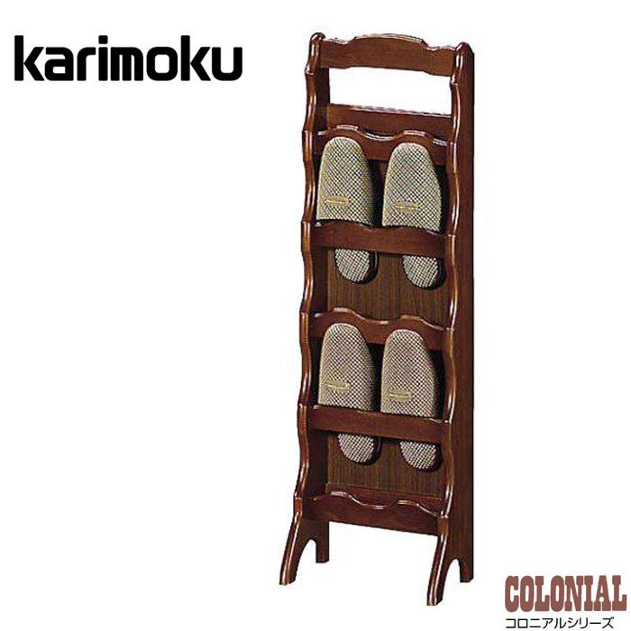 カリモク コロニアル 木製ラック スリッパラック 古家具 昭和レトロ 送料込み COLONIAL(カリモク家具) カリモク コロニアル スリッパラック 木製