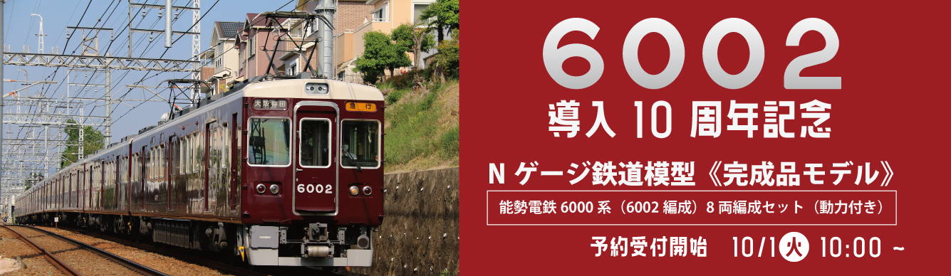 | 商品の特徴 | 能勢電鉄 6002編成導入10周年記念 8両編成 (動力付き)。91adedc89ca6252fc52a4b35454498。能勢電鉄 6002編成導入10周年記念 8両編成 (動力付き)。のせでん】2025年10月7日~再受注開始 能勢電鉄6000系6002編成 Nゲージ。能勢電鉄オリジナル受注生産の鉄道模型です | ||