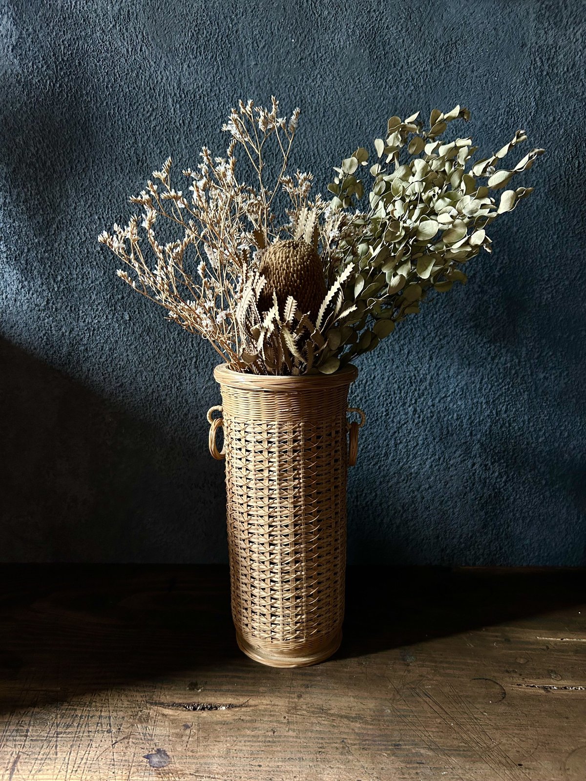 - 美術品・アンティーク・コレクション > 工芸品 > ♦西洋ヴィンテージ 純錫製フラワーベース 花器 花活け 美術工芸 骨董 籐編みのフラワーベースJ/筒型/昭和レトロ | 骨董・アンティークの
