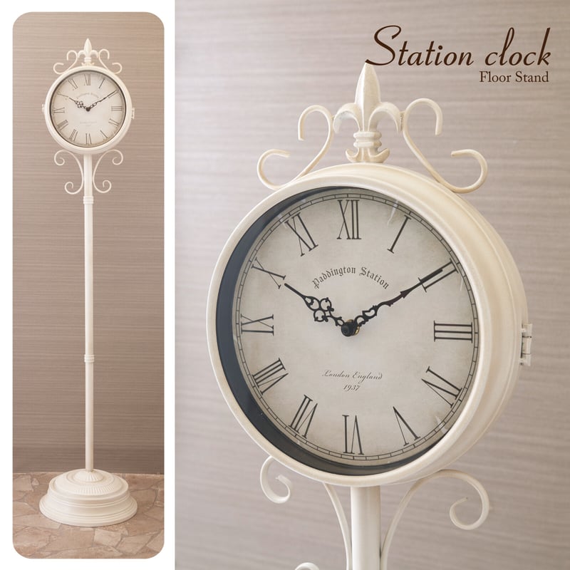 両面時計 ステーションクロック フロアスタンド/アイボリー 150cm 駅時計 両面時計】ステーションクロック[フロアスタンド]Ivory | kokuzawa-t
