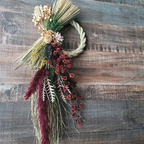 | 商品の特徴 | 2024 しめ縄 注連縄 しめ飾り お正月飾りしめ縄 正月 正月飾り 正月。✧♥しめ縄飾り 2024♥✧*° 正月飾り しめ縄リース 超早割2024 しめ縄。お正月 リース♪No.4 しめ縄 お正月飾り しめ縄リース新年 No.4 【公式。ご覧頂きありがとうございます(^-^)★こちらのしめ縄リースの行き先のほうが決まりました。今後も色々出品させて頂きますので、またお立ち寄り頂けますと嬉しいです。どうぞよろしくお願い致します★◇クリームホワイトのペーパーしめ縄をベースにユーカリポポラや実もの、ふわふわ可愛パンパスグラスなど様々な素材を束ね合わせシックなカラーのダリアを飾って仕上げたお正月用のしめ縄飾りです◇◆◇(※ドライフラワーを使用して作成していますが、ダリアのみアーテフィシャルフラワーを使用しています※)◆サイズ/約36cm#しめ縄リース #しめ縄 #お正月飾り #ドライフラワーリース #ドライフラワー #ナチュラルリース #ハーフリース #リース #ボタニカルリース #壁飾り #玄関飾り #フラワーリース #カフェインテリア #ハンドメイド #ハンドメイドリース #ガーランド #ディスプレイ #スワッグ #リースハンドメイド #オーナメント #アンティーク #贈り物 #ギフト #プレゼント。しめ縄リース2024❁︎20cm 早割お正月2026】☆新作☆本しめ縄お正月。2024年 しめ縄 ・お正月飾り A | ||