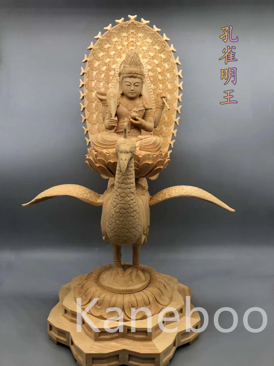 最高級 木彫り 仏像 孔雀明王立像 一刀彫 天然木檜材 彫刻 仏教工芸 最高級 木彫り 仏像 孔雀明王立像 一刀彫 天然木檜材 彫刻 仏教工芸