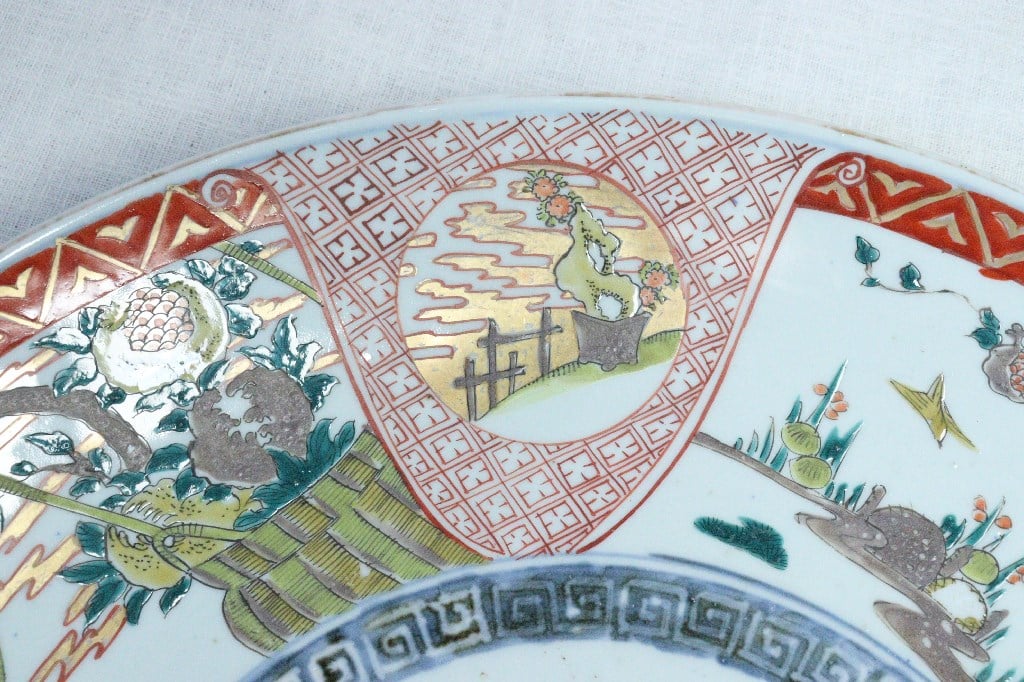 | メーカー | 古染め付 柘榴に鳥図 葉皿 明治前期色絵ザクロに鳥図尺5寸皿 |