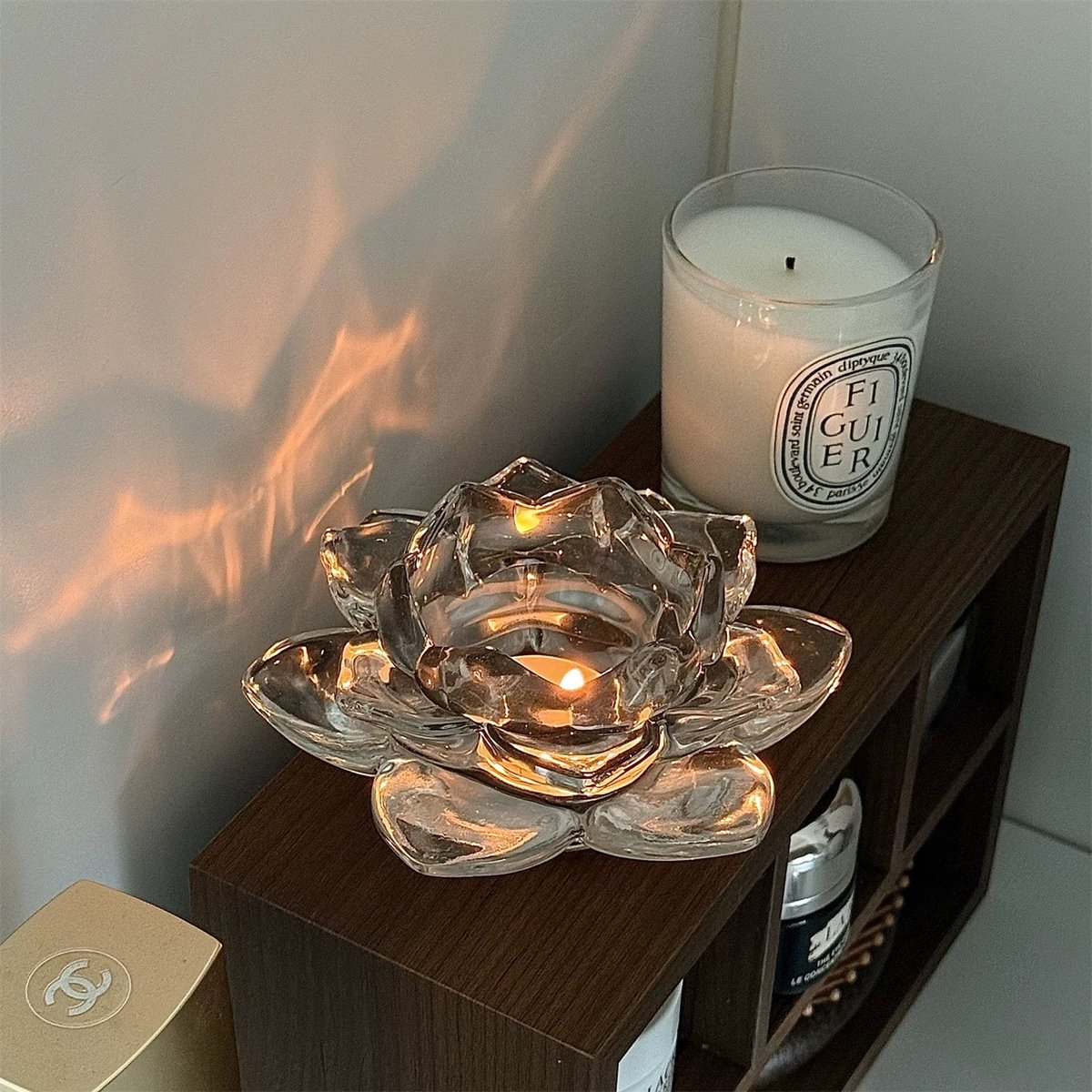 超レア ヌータヤルヴィ フラワーベース&キャンドルホルダー クリア 蓮 フラワーモチーフ クリア ガラス キャンドルホルダー スタンド | 70PARK