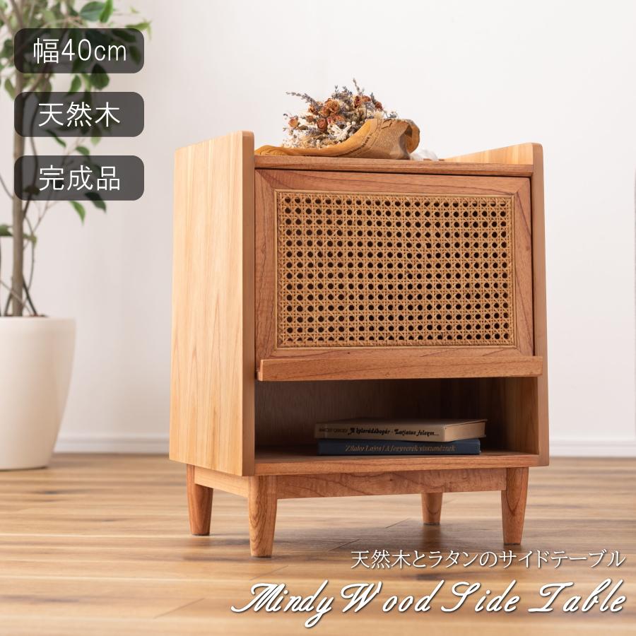 ミンディ材 サイド テーブル ラタン バスケット付き ソファー 木製 花台 机 ミンディ材 サイド テーブル ラタン バスケット付き ソファー 木製 花台 机