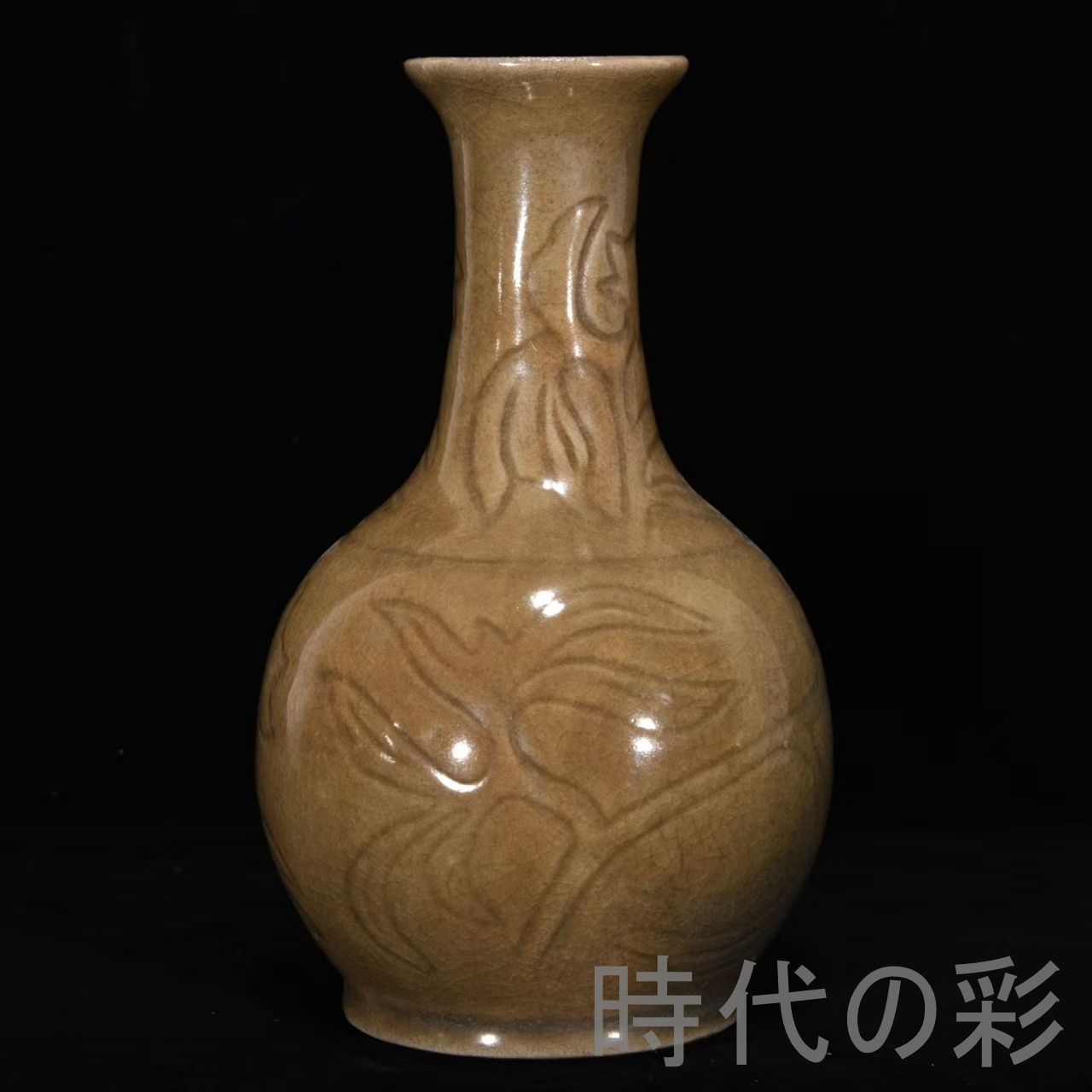 - 美術品・アンティーク・コレクション > 工芸品 > 中国古美術・旧蔵宋汝窯包口銘文 双龍人物瓶・花瓶・青釉・金彩・陶磁器・文房置物 中国古美術【宋時代 汝窯 玉壺春瓶】花瓶 案頭 刻花卉紋 官窯 青磁 旧