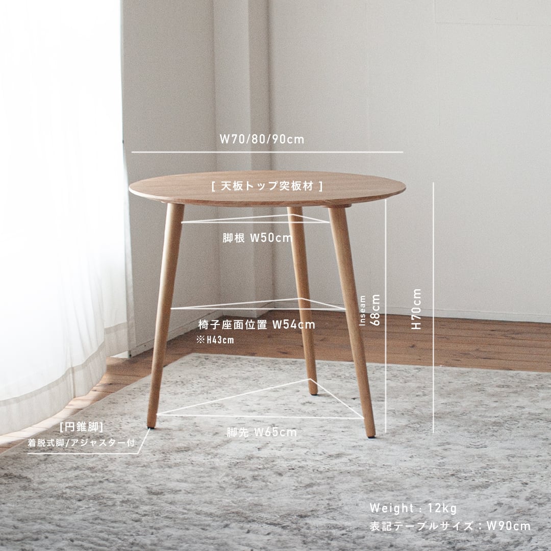 | 商品の特徴 | オーク材の3本足ラウンドダイニング[3サイズ 70cm 80cm 90cm] セミ。オーク材の3本足ラウンドダイニング[3サイズ 70cm 80cm 90cm] 天然。オーク材の3本足ラウンドダイニング[3サイズ 70cm 80cm 90cm] 天然。ビスコット家具でセミオーダーしたダイニングテーブルです。3本足で圧迫感があまりなく天板が薄くておしゃれです。半年の使用でテーブルマットを敷いて使っていたので傷、汚れなくきれいです。W80、H70:cm価格:定価28,000円➕オプションで何かしていただいたたので3万円以上でした。内容は忘れてしまいました。組立は脚をクルクル回して付けるだけで簡単です。直径:80cm高さ:70cm天厚:2cm重量:12Kg 脚数:3本足径:根元径5cm・足先径2.4cm仕上:ウレタン塗装 F☆☆☆☆ ※水・キズに強い塗装脚間:直径80cm ※ 脚の付け根42cm・椅子座面付近46cm・脚先57cm。ビスコット 3本足ラウンドダイニング80cm 天然突板 日本製。GMGH100○イタリア製 ダイニングテーブル 食卓テーブル 作業台 クラシッ。ミキモク木製ダイニングテーブル ブラウン。2-3人用ダイニングテーブル[80×80正方形]。ニトリ ダイニングテーブルセット 木製 Nシールドファブリック 160。猫脚 ダイニングセット の ダイニングテーブル ヨーロッパ風 フレンチスタイル | ||