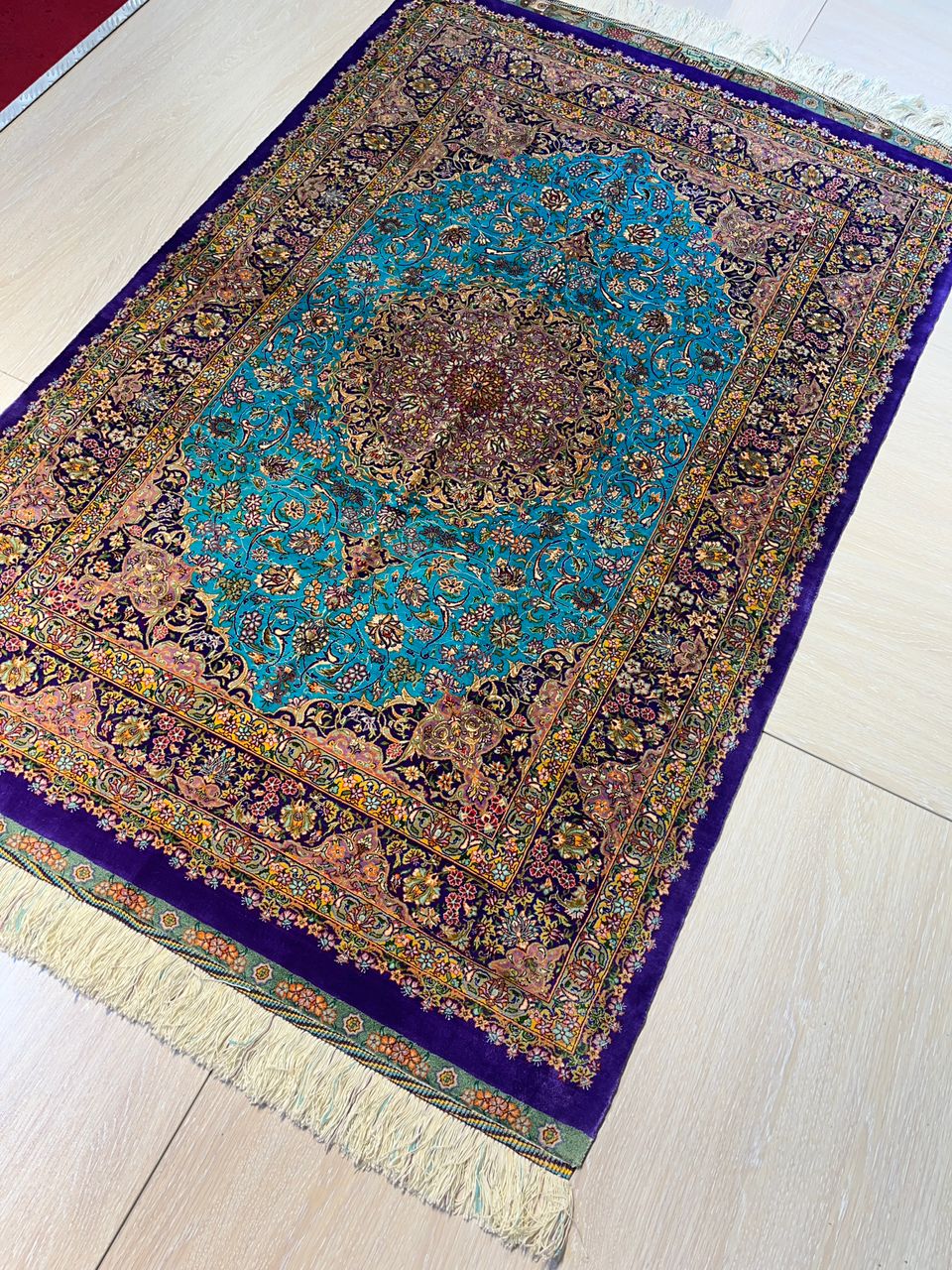 | メーカー | 152x102cmペルシャ絹じゅうたん・クム(ナイン・ギャッベ・タブリーズ 高級ペルシャ絨毯クム産シルク100% |