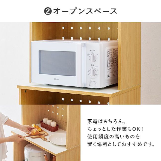 | 商品の特徴 | ガラス扉付キッチンボード幅59cm レンジ台 食器棚 ハイタイプ(1203。ガラス扉付キッチンボード幅59cm レンジ台 食器棚 ハイタイプ(1203。ガラス扉付キッチンボード幅59cm レンジ台 食器棚 カップボード。※北海道・沖縄・離島地域は、送料が掛かりますので質問にてお問い合わせ下さい※各色共に、天板とスライド収納部分はPVC製の為、本体と色が異なります◆省スペースに置けるスリムタイプキッチンラック◆扉を開ける事なく、どこに何があるか分かるガラス扉に、炊飯器など蒸気の出る家電に最適なスライド収納◆大きな調理器具や使用頻度の低い物など隠して収納出来るワゴン収納。背面通気口、コード穴付◆スライド収納は、スライドレール付背面通気口、コード穴付◆ネジ隠しシール、転倒防止ひも、脚裏フェルト付【要確認事項】※ご覧になるネット環境によって実物と色味が若干違って見える場合がございます※3~7日前後の商品出荷となります(到着した商品に不具合・破損があった場合)※商品の品質には万全を期しておりますが万一、運送中の破損や不良品、ご注文の品と違う商品が届いた場合は、必ずご連絡下さい早急に引取交換対応をさせて頂きます(交換・ご返品・ご返金をお受け出来ない場合)※完全に組み立てられて、分解出来ない状態の商品※1度ご使用になられた商品※商品の箱・説明書・梱包資材等などの付属品を破損・汚損・紛失された場合※お届け時と梱包状態が違う場合や他の箱等に入れたり無造作に箱に詰め込んだ場合●【サイズ】(約)幅59x奥行43(取手含む)x高さ182cm上部扉収納内寸:(約)幅55x奥行26cm可動棚1枚。固定棚・スライド棚:約5kg天板・ワゴン:約10kg●【材質】プリント紙化粧パーティクルボード●カラー:ナチュラル系・ブラウン系・ホワイト系●組立式です●マレーシア製送料無料 ガラス扉 キッチンボード レンジ台 食器棚カップボード キャビネット ダイニング 台所キッチン 収納。ガラス扉付キッチンボード幅59cm レンジ台 食器棚 カップボード。キャスター付◆上部扉収納は、可動棚になっている為、収納アイテムに合わせて高さ調節が可能◆オープンスペースは、家電や使用頻度の高い物を置く場所としても。引取限定 ウニコ キッチンボード HUTTE ヒュッテ 39-0210。食器棚 レンジボード ストッカー キッチンカウンター 日本製 1128-1。3段階3.2cmピッチオープン部収納内寸:(約)幅55x奥行38x高さ44cmスライド収納部内寸:(約)幅53x奥行36x高さ31cmワゴン収納内寸:(約)幅51x奥行32.5x深さ28(有効内寸43)cm●重さ:約36kg●(耐荷重)可動棚:約3kg。レンジ台 レンジラック 幅55.5cm キッチンラック4段タイプスライド棚 | ||