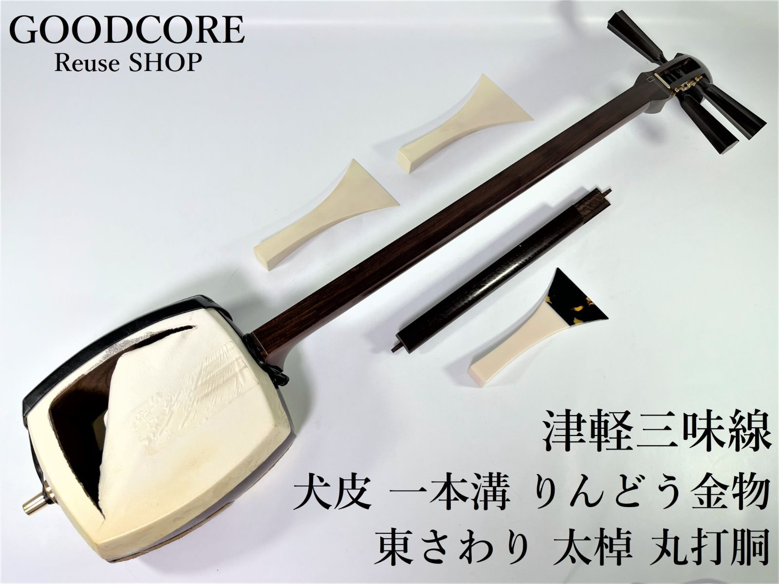 | 商品の特徴 | 三味線 中棹 東さわり付 皮破れ 【公式通販】。三味線 中棹 東さわり付 皮破れ。三味線 中棹 東さわり付 皮破れ。東さわりのついた中棹の三味線です。仮継ぎは写真で2つ分しかありませんがもう2つあるので一丁分揃ってます。糸巻きは黒檀、本体はおそらく紅木だと思います。黒い長カバンに入れて発送いたします。付属品本体、糸巻き、音緒、仮継ぎ、長カバン、胴掛け、つや布巾、長袋皮は和楽器屋さんに張替えを依頼して下さい。。三味線 中棹 東さわり有り 破れ無し ハードケース付き - メルカリ。琴電流 月光 調律器とケース付き即日発送。長唄三味線 細棹 セット。三線本体 ヘビ皮 黒/金/青。黒い篠笛 赤い点装飾 | ||