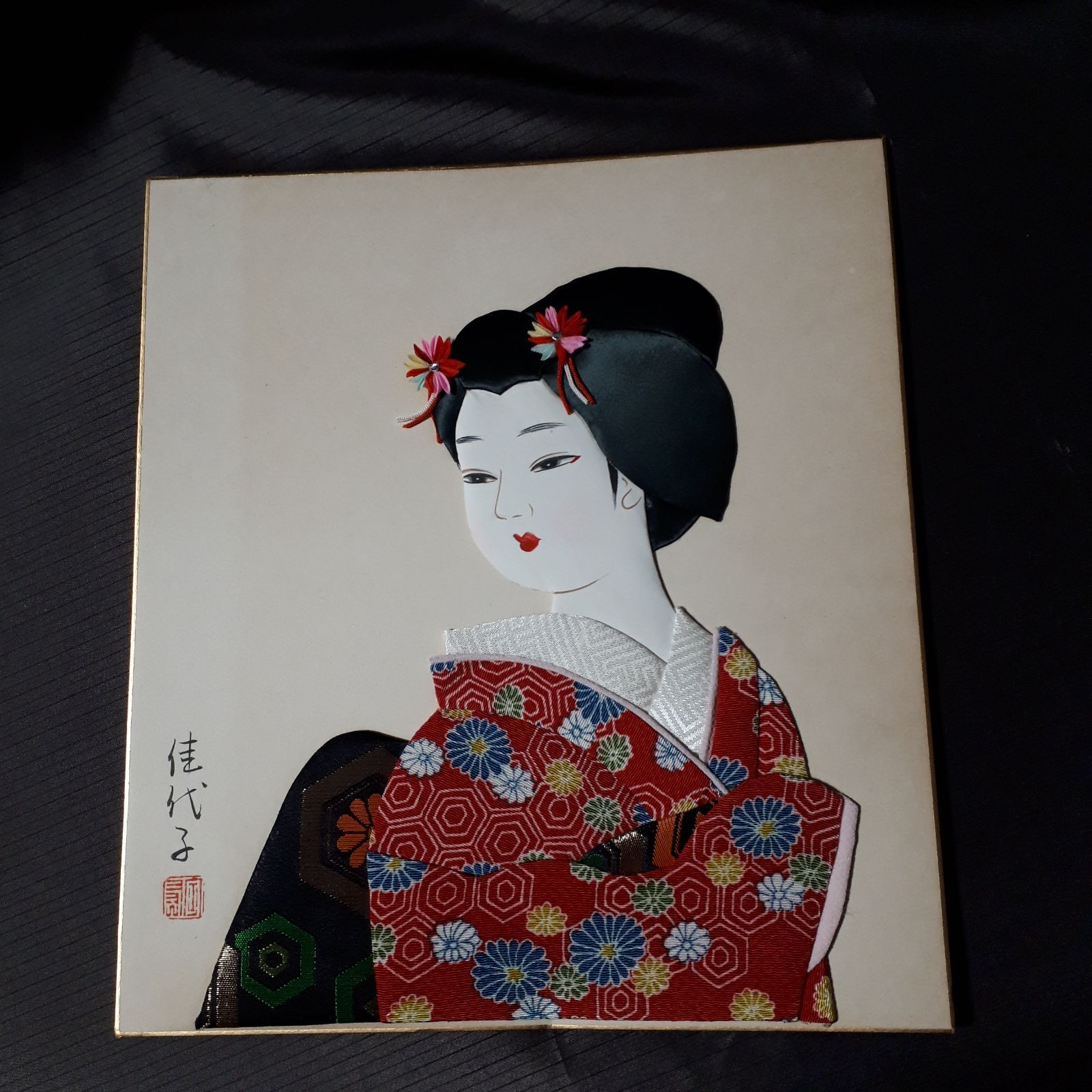 - 美術品・アンティーク・コレクション > 絵画 > 美人画 押絵 額装 和風アート 金地 着物 日本美術 インテリア飾り 和モダン 美人画 押絵 額装 和風アート 金地 着物 日本美術 インテリア飾り 和