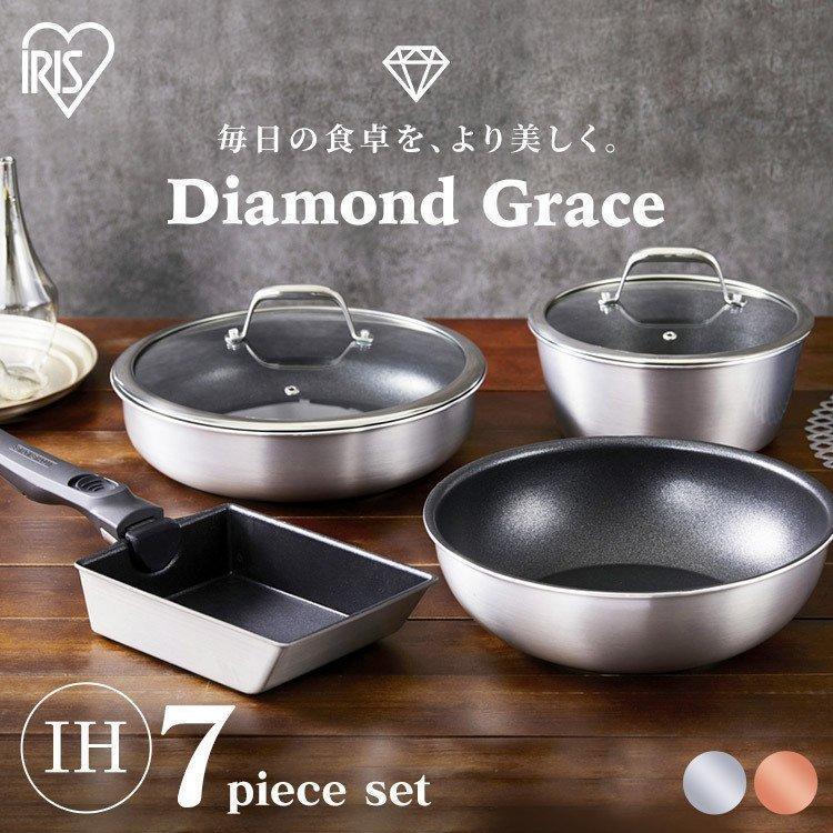 - キッチン・食器 > 調理器具 > 【未使用】♡アイリスオーヤマ♡ダイヤモンドグレイス フライパン 11点セット♡銀 IRIS OHYAMA(アイリスオーヤマ) フライパンセット IH対応 ガス ih