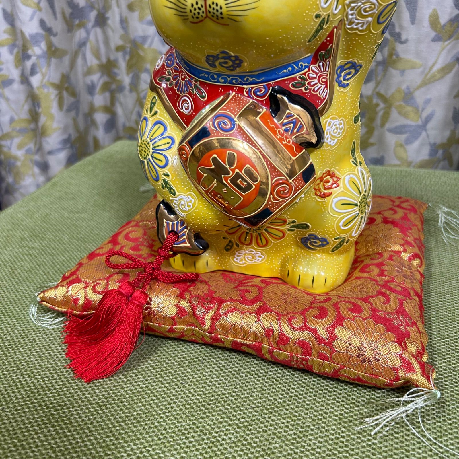 | 商品の特徴 | 九谷焼 招猫 9号 小槌持招猫 黄盛(布団付)縁起置物 招き猫 福徳招来。九谷焼 招猫 9号 小槌持招猫 黄盛(布団付)縁起置物 招き猫 福徳招来。送料無料】9号小槌持ち招き猫・白盛(九谷焼 招き猫 かわいい おしゃれ。サイズ約27cm 9号遠くから大きな福や幸運を招き寄せる「手長(てなが)」の招き猫です。右手を上げていること自体が「金運」を招く意味に加え、さらに高い位置まで手を上げていることで、より強い金運や大きな幸運を引き寄せると考えられています。黄色い招き猫は、金運アップや良縁を願う人に最適で、富や願い事を叶える打ち出の小槌を持ったとっても素敵な縁起物です。目立った傷や欠けはなく、状態が良いお品です(^^)楽天やヤフーショッピングなどで4万以上で売られている商品です。ぜひこの機会にお買い求めください。。th_kti2186.jpg。アゲートスライス アゲートプレート 瑪瑙。ベネチアングラス カエル ヴィットリオ・コスタンティーニ。パワーストーン アメジストドーム大幅お値下げ中です。ウィンスタンレイ・キャット | ||