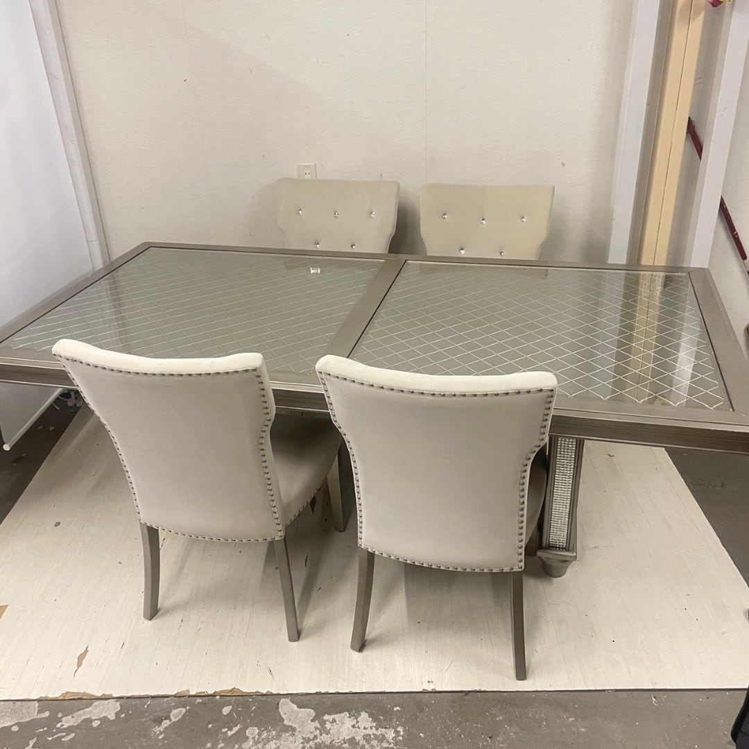 - 机・テーブル > ダイニングテーブル > 24923 4人掛けガラス天板ダイニングテーブル 椅子4脚セット アシュレイ 24923 4人掛けガラス天板ダイニングテーブル 椅子4脚セット アシュレイ