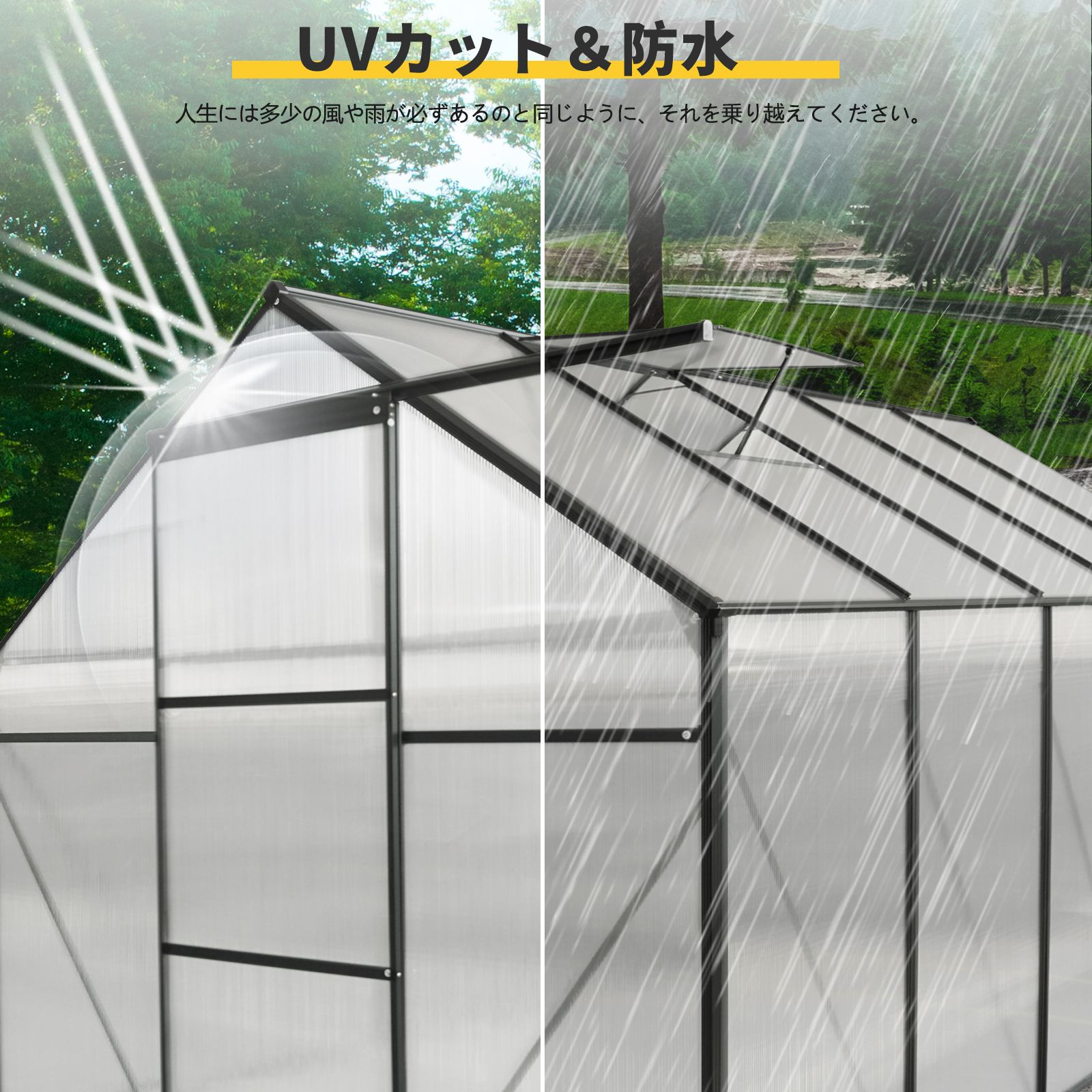 | 商品の特徴 | 温室 保温 温室棚 収納庫 園芸用 188*310*195cm ビニールハウス 頑丈。武田コーポレーション ビニール温室棚4段 幅70×奥行49×高さ160cm。楽天市場】温室 ビニールハウス 育苗 寒冷 霜 菜園 タカショー / パン。1220227★ #Umeの園芸用品をもっと見る【高品質な材質】アルミフレームとポリカーボネートパネルを採用し、耐久性と透明度を兼ね備えています、その同時に日光を十分に採り入れます。アルミチューブには酸化処理を施し、錆びにくく長持ちする設計となっています。【排水システム&亜鉛メッキスタンド】排水溝システムは温室内の水を効率的に外に排出します。傾いた屋根は天井に水がたまりません。亜鉛めっき台は土壌にしっかりと固定し、悪天候から温室を保護します。【頑丈なフレーム】厚さ4mmのポリカーボネートプレートは、屋外の-20℃から70℃までの温度に耐え、十分な日光を通し、ほとんどの紫外線をカットします。アルミ合金フレームは粉末コーティングを採用し、耐久性と錆びがありません。このパネルは植物の成長に最適な光を70%まで透過し、有害な紫外線を99.9%以上カットします。【步入式宽敞温室】理想的な栽培環境は、植物や花を自在にアレンジできる十分な広さです。霜や加熱から植物を守りましょう。温室効果で最高の栽培効果を得られます。【スライドドア】スライドドアは出入りを容易にし、動物やペットから植物や花を保護します。すべての詳細な説明が含まれているので、その通りに簡単に組み立てることができます。。Amazon.co.jp 売れ筋ランキング: ビニールハウス・温室用品 の中で最も。ラタン風ガーデンファニチャーセット芝生付き。ガーデンファニチャー ガーデンチェア ガーデンテーブル 5点セット ブラック。ガーデンパラソル ビーチパラソル 日除け きグリーン。ガーデンファニチャーセット ガーデンテーブルセットブラック×クッションホワイト。ラタン調ガーデンファニチャーセット ガーデンテーブルセット ガーデン【ベージュ】。IKEA HAVSTEN ハーヴステン クッション3つ付き。ガーデンファニチャー ファニチャー 4点セット ブラック×ベージュ B。新品 ガーデンファニチャー ファニチャー ラタン調 4点セット ブラック。ガーデンパラソル ビーチパラソル 日除け ブラウン。【ナチュラル】ガーデンファニチャー 3点セット ガーデンチェア クッション付。新品 ガーデンファニチャー ファニチャー ラタン調 4点セット。新品 ガーデンファニチャー ファニチャー ラタン調 4点セット ブラックベージュ | ||