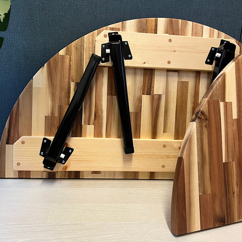 - 机・テーブル > センターテーブル・ローテーブル > 【送料無料】 テーブル 丸形 直径90cm アカシア ブラウン 折畳み アイアン 送料無料】 ローテーブル 丸形 90cm 2分割 アカシア 折りたたみ脚 ロー