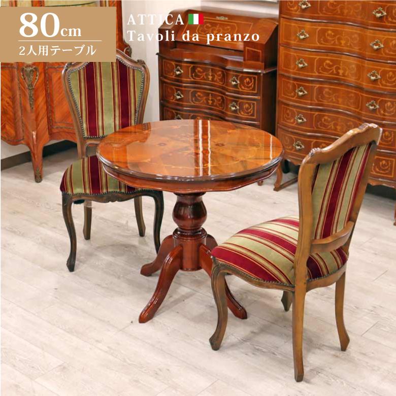 EHK80 象嵌 クラシック ラウンドテーブル ダイニングテーブル 食卓テーブル イタリア ダイニングテーブル 80cm幅 象嵌 カフェテーブル 食卓 円形