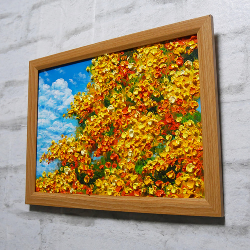 - 美術品・アンティーク・コレクション > 絵画 > 油絵 油彩 油彩画 絵 絵画 【青い背景のミモザ】 油絵 油彩 油彩画 絵 絵画 【青空のミモザ】 絵画 HR 通販 14514815