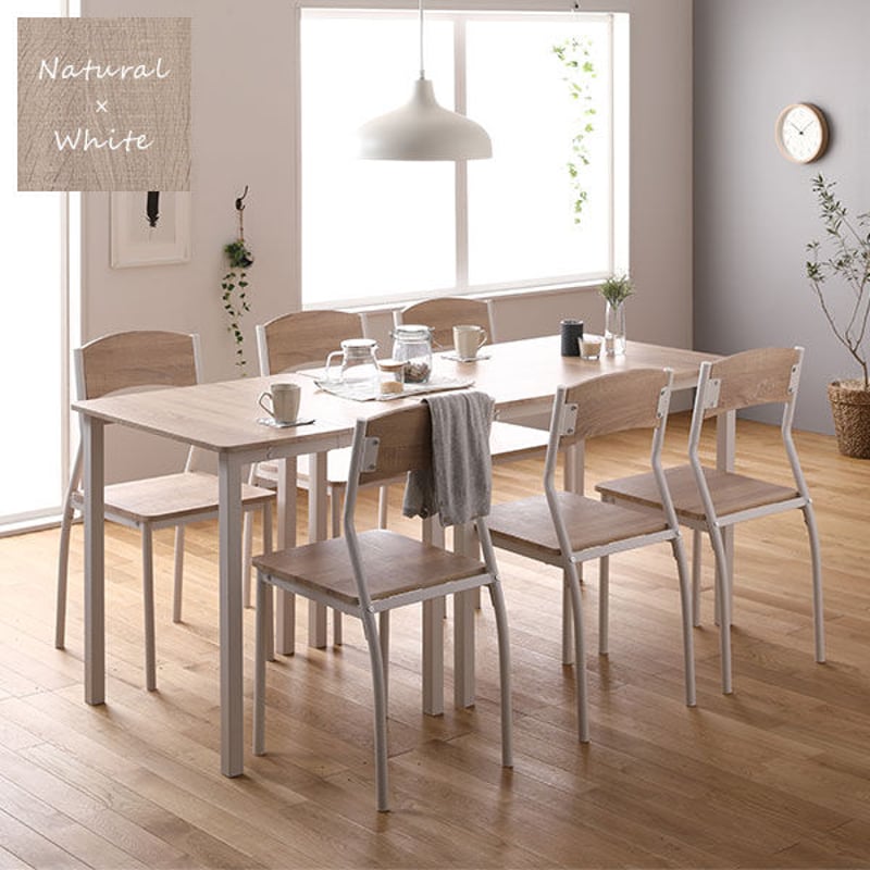 - 机・テーブル > ダイニングテーブル > 【ダイニング セット 8点テーブル 幅180cmチェア6脚ナチュラル×ホワイト】 ダイニング セット 8点 分割 テーブル 180cm チェア 6脚 ナチュラル