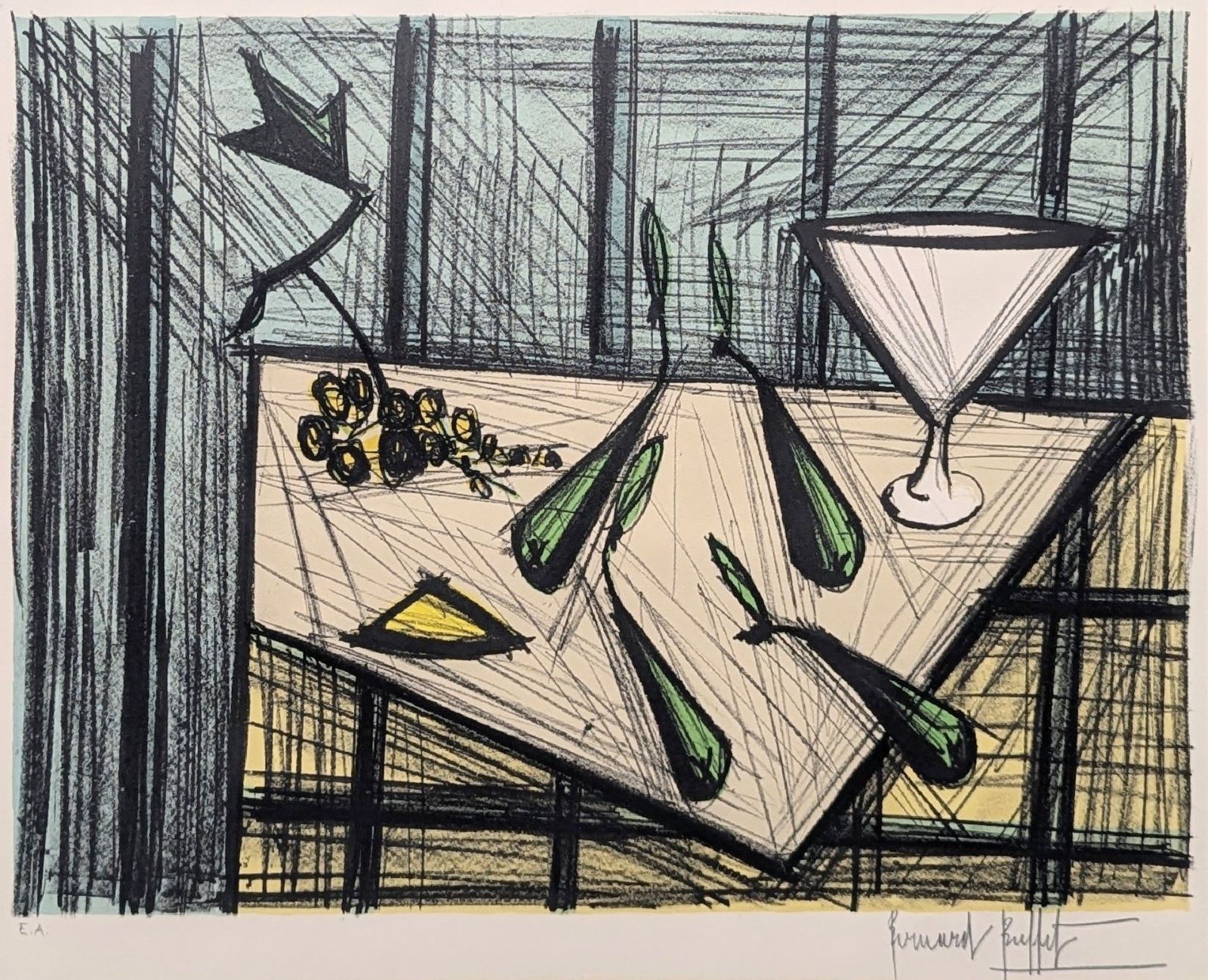 - 美術品・アンティーク・コレクション > 版画 > 【真作】【直筆サイン】ベルナール・ビュッフェ「洋梨のある静物」【美品】 ベルナール・ビュッフェ「洋梨のある静物」リトグラフ 直筆サイン 1990