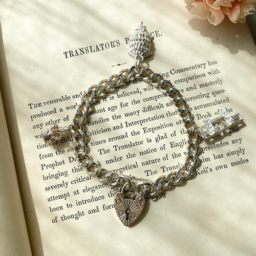 - 美術品・アンティーク・コレクション > その他 > ヴィンテージ 英国製トラベルチャームブレスレット 925 重量約75g 即送 英国 ヴィンテージ ハートパドロック ブレスレット ロンドン チャーム