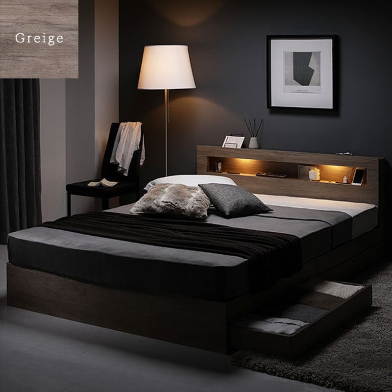 - ベッド・マットレス > ベッドフレーム > ベッド シングル ベッドフレームのみ グレージュ ds-2506161 ベッド シングル ベッドフレームのみ グレージュ 照明付き 収納付き