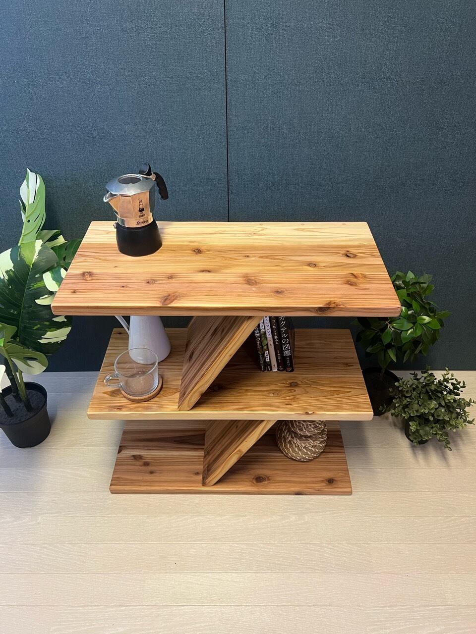 | 商品の特徴 | 送料無料】 オープンラック アングルデザイン 60cm 3段 杉 ナチュラル。送料無料】 オープンラック アングルデザイン 60cm 3段 杉 ナチュラル。送料無料】 オープンラック アングルデザイン 60cm 3段 杉 ナチュラル。栄町工房です。ご覧頂き誠に有難う御座います。◎荒々しい木目が特徴の、杉材を使用した小型のオープンラックです。◎縦材を斜めに配置してデザイン性を上げるのと同時に、本などを立てかけられる様に受け材を配置してみました。◎一般的なラックは縦材が直角で角張ったイメージですが、こちらはほんの少し軽いイメージになると思います。◎ビス穴は全て埋木処理を施しております。◎デザインを重視したラック、リビングのお供に如何でしょうか?【寸法】横幅60cm、奥行30cm、高さ60cm【仕上げ】ウレタンコーティング【納期】10〜14日程度【商品の注意点等】・ウレタンコーティングは耐光性・耐水性に優れておりますが、水に濡れた場合は早めに水気をお拭き取り下さい。・木目は素材によりまちまちとなりますが、逸品モノとしてご了承ください。・寸法に関しましては多少の誤差が生じる場合が御座います。・金物類の仕様が変更になる場合が御座います。・稀に塗装ムラや垂れ跡が残る場合が御座います。・天然素材を使用しておりますので、傷や欠けや節穴、凹み等が残る場合が御座います。【ウォールシェルフのお取付け】・お取付けの際は壁の下地を狙ったビス打ち固定をお勧め致します。・ハンガーが壁下地と合わない場合は、ハンガーの位置をご調整下さい。・取付用ネジは付属致しません。・木材と木材との間に隙間が出てしまう場合が御座います。・木材の歪み等で壁面に全ての面が接地しない場合が御座います。【変更オーダーについて】・規格の都合でご希望に添えない場合も御座いますが、極力お客様のご要望に叶う様にご対応致します。・サイズ変更、高さ変更、色替え、脚の仕様変更などのご要望が御座いましたらお気軽にお問合せ下さい。・完全オーダーメイドも承っております。【お知らせ】・私たちは素材本来の美しさを活かした家具造りを心掛けております。・取扱商品のお値段は全て送料込みとなっております。・当工房はお気軽な家具屋を目指しておりますので、ご質問等御座いましたらお気軽にご連絡下さい。・是非ホームページにもお越し下さい。。ラック スチールラック オープンラック ディスプレイラック ウッド。【週末限定値下】 無印良品 スタッキングシェルフ・ワイド・2段・オーク材。J-PRESS・靴下用ディスプレイボックス。籐ハンガーラック。マントルピースSb型(mimi) 送料込 組立タイプ。アンティーク 棚 チェスト 本棚 飾り棚 引き出し 無垢材 昭和レトロ。大川家具 ランドリー収納 奥行き40cm 幅60cm チェスト。吊り棚3段。すもも。気泡 棚 花柄 2段ラック 昭和レトロ レトロポップ インテリア 当時物 緑。木製ラック 4段 オープンシェルフ 楔棚 古家具 剥離家具 ストリップド家具。IKEA FJÄLLBO フィエルボ ユニットシェルフ 100×136×36。unico シグネ テレビボード signe。カリモク 棚 本棚 チェスト QS5082 幅150cm モカブラウン。StringPocket ウォルナットブラック。② 箪笥 古家具 飾り棚 食器棚 古民家 ガラス棚 上下別売り。無印良品 パイン材ユニットシェルフ 木製ワードローブ。【送料込み】IKEA KALLAX カラックス インサート付き。ロングトミカ Nゲージ 収納ケース 40マス アクリル障子付 日本製。美品・廃盤希少★無印 パイン材ユニット棚・大(旧パイン材ユニットシェルフ)。無印良品 パイン材ユニットシェルフ 86cm幅・大。棚 昭和レトロ レトロポップ 当時物 インテリア ビンテージ。食器棚/リビング収納/アイアンラック/ユニットシェルフ。ガラスケース コレクションケース フィギアケース ディスプレイケース ラック | ||