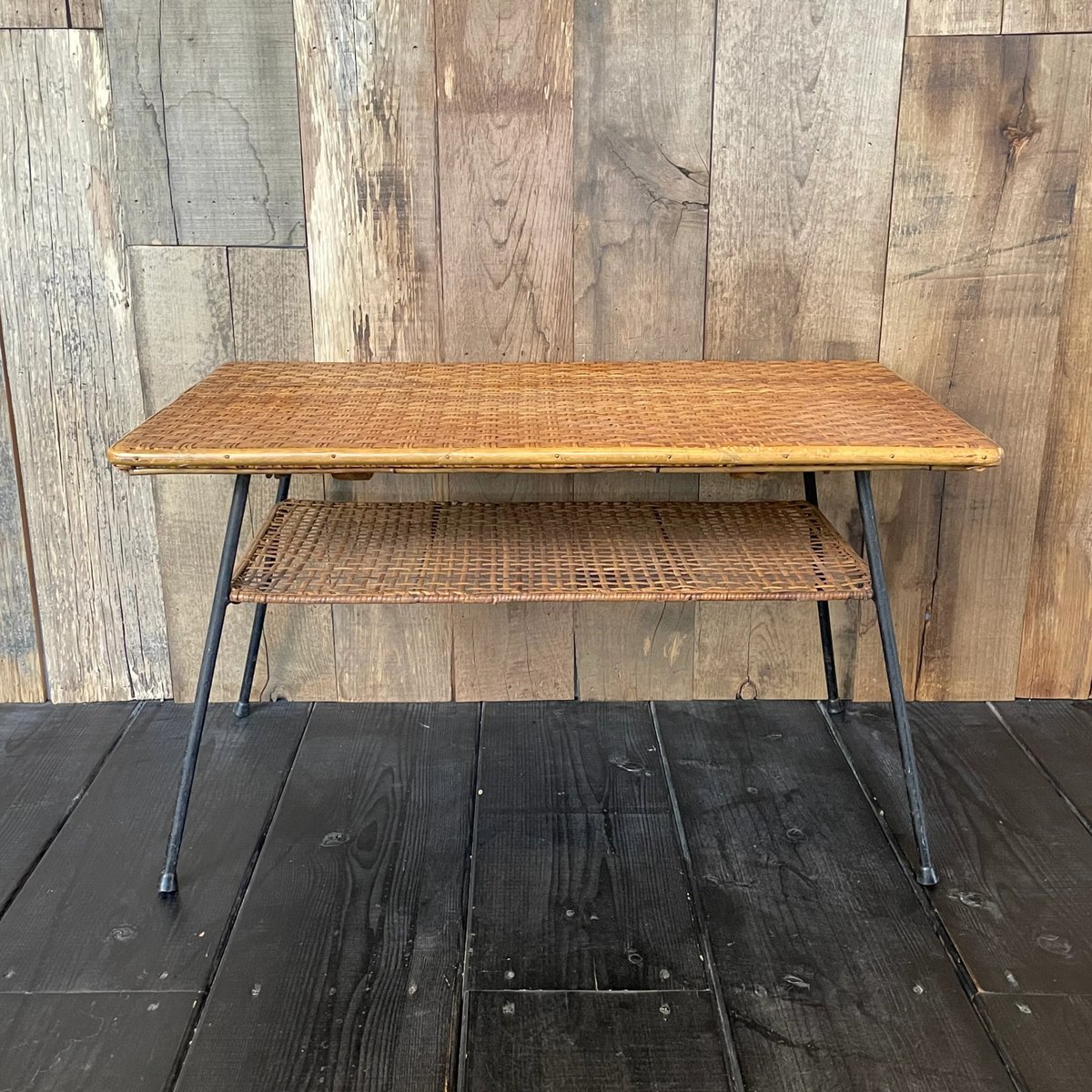 - 机・テーブル > サイドテーブル・ナイトテーブル・ローテーブル > 古家具 サイドテーブル レトロ 木 籐 ラタン 古道具 アンティーク 古家具 サイドテーブル レトロ 木 籐 ラタン 古道具 アンティーク