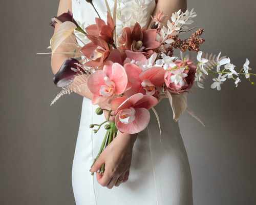 | 商品の特徴 | 再再販‼︎血色感アップ⭐︎胡蝶蘭ウェディングブーケ/アーティ。9f348e1d174fe595c628b55e813c2a。ブーケ ウェディングブーケ アーティフィシャルフラワーブーケ 和装用。PEONYS BRIDALのBouquetは、一品、一品を花材選びからカラー、フォルム、マテリアルまでバランスの調和を大切にした全てがこだわりの1点物です。ヘッドピース付き和装ブーケ ブライダルブーケ アーティフィシャル。和装用ブーケとして白無垢や打ち掛けの際、扇子代わりにお持ちいただくと、とても素敵で目を惹く事と思います。【専用】ブーケ&ブートニアオーダーページ。先端には歩くと揺れるシンビジュームの可憐さがあり、お手元は大輪のダリアが華やかです。ヘッドピース付き和装ブーケ ブライダルブーケ アーティフィシャル。両手で持ったり、片手で持ったり様々な持ち方が出来、色んな角度からフォトを楽しむことも出来ます。【専用】ブーケ&ブートニアオーダーページ。ブートニアはつきません。ヘッドピース付き和装ブーケ ブライダルブーケ アーティフィシャル。サービスでお付け致します。【専用】ブーケ&ブートニアオーダーページ。アーティフィシャルフラワーは茎そのものにワイヤーが入っているため、多少広げたり向きを変えたりする事が可能です。ヘッドピース付き和装ブーケ ブライダルブーケ アーティフィシャル。■PEONYS BRIDAL■#和装ブーケ#和装用ブーケ#ブライダルブーケ#アーティフィシャルフラワーブーケ#ウェディングブーケ#クラッチブーケ#扇子#アームブーケ#peonysbridal。楽天市場】ブーケ ホワイト 造花 ウェディングブーケ アリス。お気に入りを見つけて下さったら幸いです。*..*.*:......•*.'*'.・*.・*.•*..*..・*【ブライダルブーケの説明】ナチュラルに束ねたアームブーケ。【専用】ブーケ&ブートニアオーダーページ。ヘッドピース付き和装ブーケ ブライダルブーケ アーティフィシャル。シックで大人っぽい雰囲気が落ち着いた女性のイメージを格上げしてくれます。白やワインレッドの中に赤い実が色鮮やかにアクセントになっています。ヘッドピース付き和装ブーケ ブライダルブーケ アーティフィシャル。【専用】ブーケ&ブートニアオーダーページ。動きのある揺れる花材が素敵です。実物が入ると「実りある人生」の意味合いもあり縁起が良いです。【専用】ブーケ&ブートニアオーダーページ。ヘッドピース付き和装ブーケ ブライダルブーケ アーティフィシャル。アーティフィシャルフラワー(質の高い造花)にて制作しています。*ブーケのおおよその大きさ(一番長い部分で)縦73センチ程横43センチ程*和装のためブーケ、ヘアピースのセットです。ヘッドピース付き和装ブーケ ブライダルブーケ アーティフィシャル。【専用】ブーケ&ブートニアオーダーページ。ウェディングドレスなど洋装で持たれたい方は、手元の組紐部分をリボンに直させていただきます。ブートニアがご希望の方はお伝え下さい。【専用】ブーケ&ブートニアオーダーページ。ヘッドピース付き和装ブーケ ブライダルブーケ アーティフィシャル。*ヘッドピースは美容師さんと相談しながらお好きなアレンジに仕上げるヘアピンタイプです。【配送について】もともと生花が入っていた丈のあるダンボールにてなるべくそのままの形を保ち送らせていただきたいと思いますが、多少花材がダンボールにあたります。ヘッドピース付き和装ブーケ ブライダルブーケ アーティフィシャル。【専用】ブーケ&ブートニアオーダーページ。*お写真ですので機種や光による多少の色の誤差がございます。*その他ご質問、ご要望ございましたらお伝え下さいませ。【専用】ブーケ&ブートニアオーダーページ | ||
