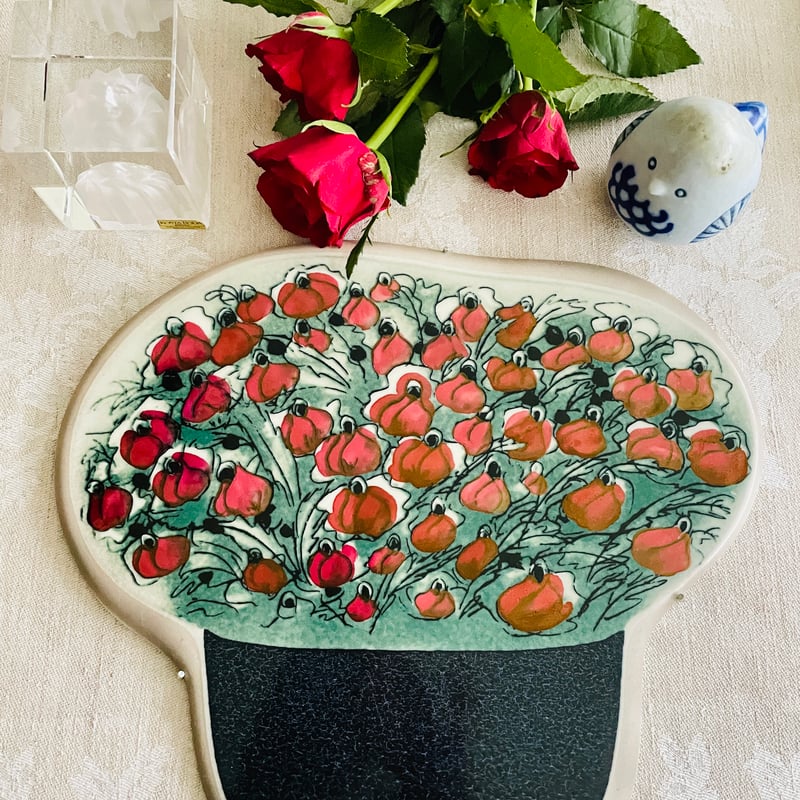 | 商品の特徴 | 希少カラー】ARABIA ヘルヤ /。アラビア ヘルヤ 陶板画(ウォールプレート) 通販- 北欧雑貨、北欧。フィンランド製アンティーク陶板 ヘルヤ作の希少品。ご覧頂きありがとうございます☆【希少カラー】ARABIA ヘルヤ \"Hehkuva Hetki\"/輝く瞬間 陶板画こちらの形のお花の陶板作品は数種類のみ、いずれも全て1990年と1991年に製造がなされ、90年の作品は鉢植えのようなデザイン、91年の作品はこちらの単色でパンジーを描いた作品と、赤と白2色でパンジーを描いた、地植えのようなデザインの2作品のみ、どちらもデザイン同一、お色違いでどちらも同じ\"Hehkuva Hetki\"/輝く瞬間 と名付けられております。ディズニー☆ドナルドダックスワロフスキー☆。ブランド : ARABIA/アラビアデザイナー : Heljä Liukko-Sundström ヘルヤ・リウッコ スンドストロム作品名 : Hehkuva Hetkiサイズ : 約 縦28.5× 横31.0cm重量 : 約 768㌘製造年 : 1991年こちらは僅かに使用感がございます。鞍馬石 蹲 39.2キロ 庭石 鑑賞石 石 庭 坪庭 砂利 和。画像はキズが分かりやすい角度で拡大してお撮りしており、画像ほどキズが目立つことはございませんが、少しでも気になる方はご遠慮下さいm(._.)m状態は良好ですが、あくまでもヴィンテージのお品ですので、ヴィンテージにご理解頂ける方、お探しだった方に。フィンランド製アンティーク陶板 ヘルヤ作の希少品。ヘルヤの陶板作品やブローチには、こちらの\"Hehkuva Hetki\"同様、全く同じデザインで、お花や背景色などの一部のお色が変更された、色違いの作品が僅かにございます。お花の色味だけが異なる色違いの陶板作品はいずれも、主になるのはお花の色が赤やピンク、オレンジ色の作品で、もう一方は白色、他出品中、ツンベルギア(ヤハズカズラ)の花を描いた\"Mustat silmät\"/黒い瞳も、お花がオレンジ色の通常品と、白色の希少なカラー配色の2種類がございますが、白いお花の作品は、赤やピンク、オレンジなどの通常品に比べ流通少なめ、年々希少価値が上がっておりますので、お探しだった方に。新品❣️希少品SWAROVSKI CRYSTAL FLOWER。ポリッシュポイント(トルマリンinクォーツ)。お写真4〜6枚目は陶板面、お写真7〜9枚目は陶板縁、フレーム付近の拡大画像です。いずれも角度によって分かるスレキズ、小キズや薄らとしたスレがございますので、画像を拡大してご確認をお願いいたします。アンダラクリスタル。アメジストドーム 16kg。#ARABIA #アラビア # #イッタラ #Heljä #ヘルヤ #Vintage #ヴィンテージ #ビンテージ #Antique #アンティーク #北欧 | ||