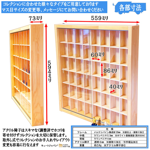 - 棚・ラック・シェルフ > 木製ラック・ウッドラック > コレクション収納 ボトルキャップ フィギュア ガチャ 48マス アクリル障子付 コレクション収納 ボトルキャップ フィギュア ガチャ 48マス