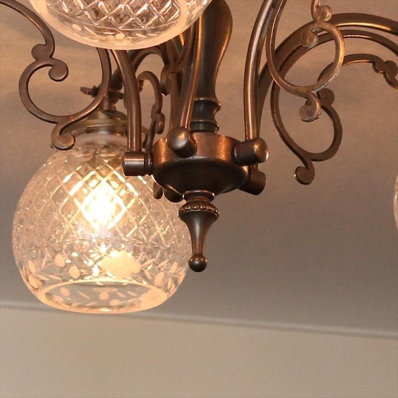 - ライト・照明 > シーリングライト・天井照明 > 昭和レトロ ヴィンテージ 5灯シャンデリア クラックルガラス シーリングシャンデリア アンティーク調 ガラスシェード ブロンズ パン