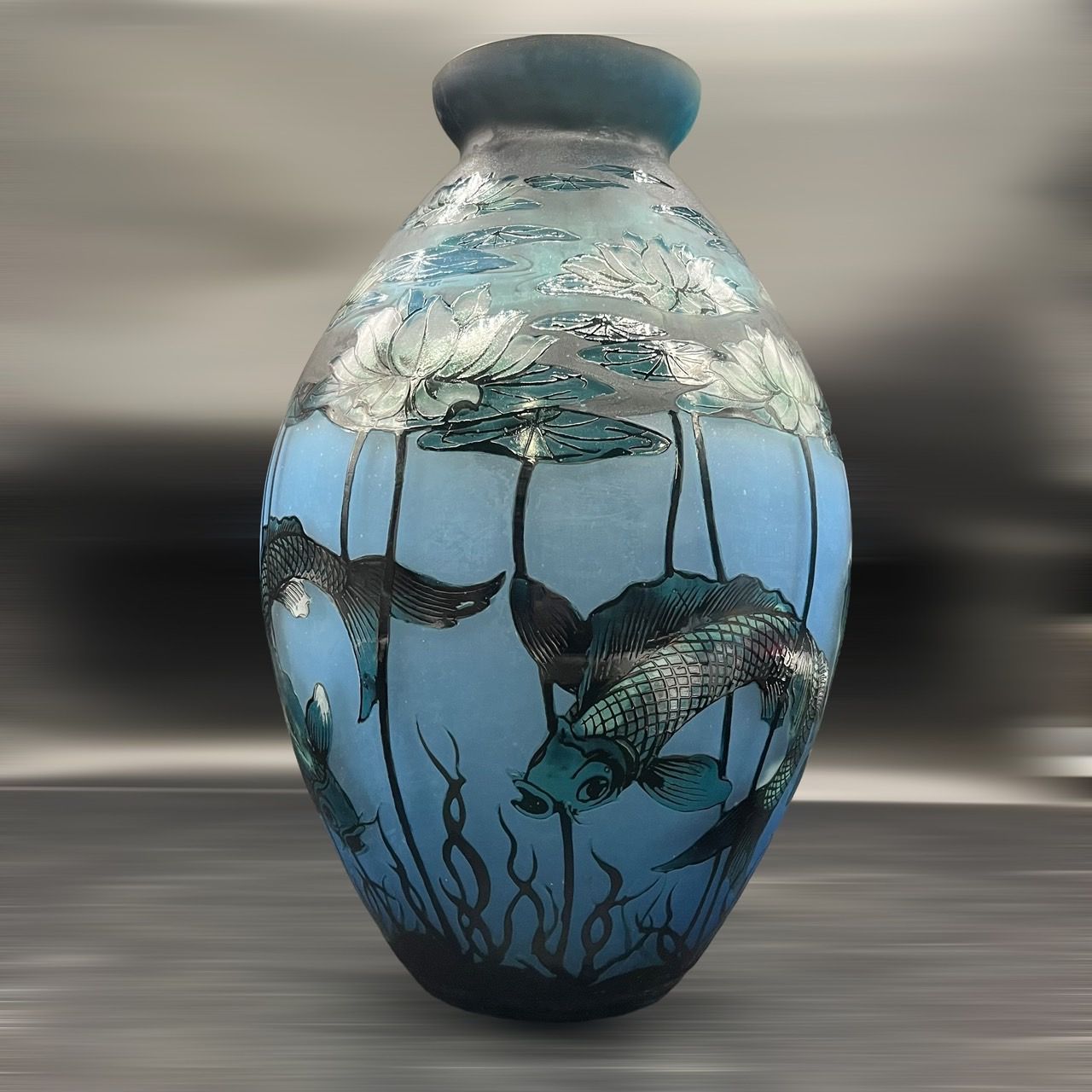 - 美術品・アンティーク・コレクション > 工芸品 > エミールガレ 鯉紋 特特大 花瓶 カメオ彫り 被せガラス 高さ40cm エミールガレ 鯉紋 特特大 花瓶 カメオ彫り 被せガラス 高さ40cm