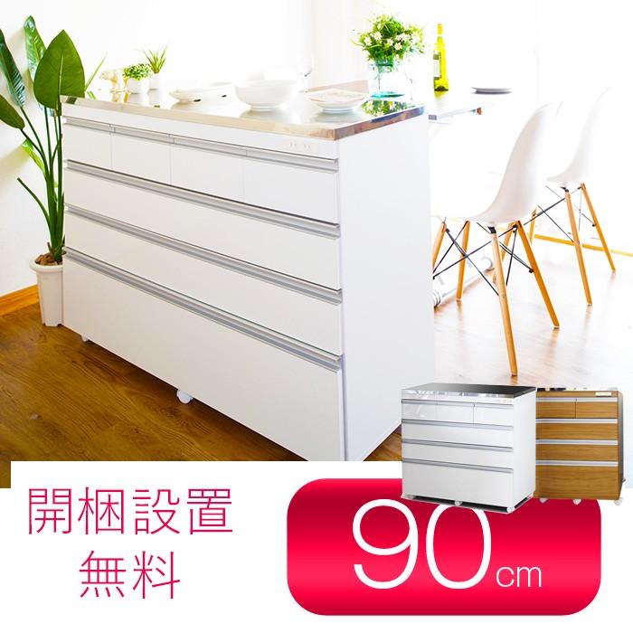 - キッチン収納 > 食器棚・キッチンカウンター > CooLith ステンレス天板 キッチンカウンター 幅90cm キャスター付 ステンレス天板の頑丈キッチンカウンター COOLITH 90 プレミアム 薄型