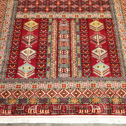- ラグ・カーペット・マット > ラグ・カーペット > パキスタン 手織り ラグ カーペット 絨毯 幾何学的 幾何学模様 高級ラグ カーペット 艶々ふかふか パキスタン手織り絨毯 トルクメン
