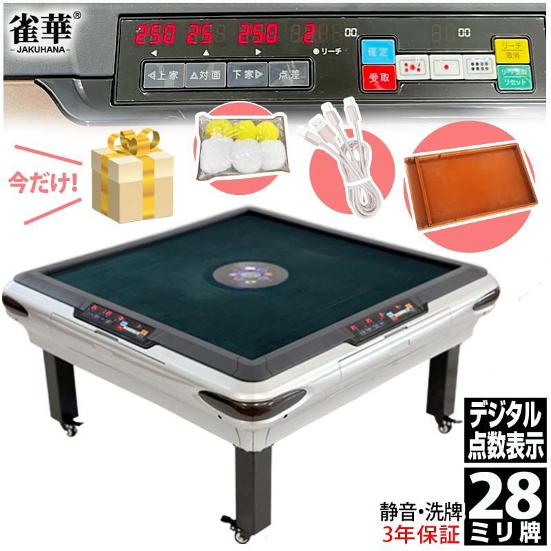 | 商品の特徴 | ☆新品 全自動麻雀卓 折りたたみ デジタル点棒計算 アルミ製脚。新品】全自動 麻雀卓 28mm ブラック アルミ製脚 ドリンクホルダー 麻雀。新品】全自動麻雀卓 黒 ガラス脚 28mm 点数表示 点棒計算 デジタル。◆ご閲覧ありがとうございます!万が一初期不良の場合は対応させていただきます。楽天市場】全自動麻雀卓 最新モデル点数 点棒デジタル表示 四角パネル。◆北海道、沖縄、離島への配送は別途郵送料がかかります。激レア!高級麻雀 藝夢堂 マージャン牌 昭和 レトロ 赤3ピン。対象の方はコメント欄にコメントをお願いします。全自動麻雀卓用 新品 33ミリ牌セット 背面色/青黄 各144枚入 赤牌花牌つき。◆商品説明◎カラー:ブラックです。高級麻雀牌 鳳凰(新品未使用)。 他カラーをご希望の際はコメントください●全自動麻雀卓にガラス脚登場!!スタイリッシュで洗練されたガラス脚が新登場!高級感のあるカッコいいデザイン!●面倒な計算不要!プレーに集中できる!プレーに集中できる、もう1つ上のランクの麻雀台をご自宅で。★背黒★付属品完品★ ミズノ丸一「ひまわり」麻雀牌。・デジタル表記で点棒の移動がいらない・点差が一瞬でわかる・さっき支払った点数が見れる・ボタンが押しやすく操作が簡単に!●狭い部屋でも設置が可能な全自動麻雀台!遊ばない時はコンパクトになり空きスペースに収納できます。NINJA 麻雀卓 デジタル表示 スタンド付き。しかもキャスター付きなので移動もらくらく♪また、他社様には無い牌トレーも一緒につけておりますので、折り畳んだ際に邪魔になる牌を片付ける事も可能です!●マンションやアパートのお客様にも安心してお使い頂ける様、『静音』を意識して開発を致しました。【新品未開封品】すごろくや すずめ雀。他社様と比べても音は小さめです。【任天堂】麻雀牌 役満 新象牙【オマケ付き】。それでも気になると言う方には、床に吸音マット等を引く事を推奨いたします。藝夢堂 GD 高級麻雀牌 定価25,000円。●真ん中の形が四角になっていますので、きれいな横列にする事ができ、サイコロもボタンを押すだけで回せる快適仕様となっております。麻太郎ページです。。点棒収納口は広く作っておりますので、点棒が取り出しやすくなっております。【新商品】アカギ 鷲巣麻雀牌【公式】©福本伸行/竹書房 ★待望の新バージョン。●ドリンクホルダー付きサイドテーブルを使用せず、ドリンクホルダーに置くことが可能です!飲み物をこぼして故障することもなくなります。任天堂 麻雀 役満 鳳凰。●スマホホルダー付き(充電可能)置く場所に困るスマホを手元で保管できる!usb電源もついているので、充電しながら麻雀をすることができます!●豊富なアクセサリー・牌トレー・iPhoneのタイプC対応ケーブル×2本・麻雀台専用カバー・麻雀牌2セット・ドリンクホルダー×2・点棒・東南マーク1枚・焼き鳥マーク4枚・掃除ブラシ●日本語説明書つき。自動麻雀卓 [点数表示付き]。組み立て動画もあるので、組み立てに困ることはありません!雀鳳 全自動麻雀卓 麻雀台 自動 点数表示 電動麻雀卓 全自動雀卓 28mm5 | ||