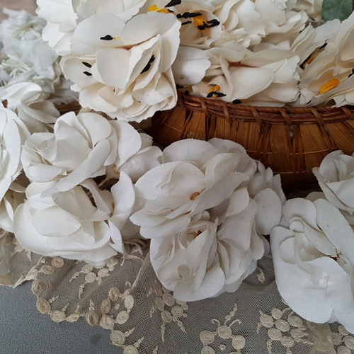 - 美術品・アンティーク・コレクション > 彫刻・オブジェ > フランスアンティーク 布花 ブーケ フランスアンティーク 布花ブーケ 白 チャーム Mon Atelier COUTURE