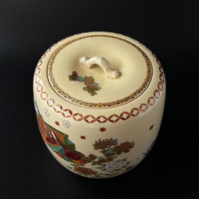 茶道具 色絵 薩摩焼 源氏絵 水指 中野静鳳 共箱 さつま焼 源氏物語 茶会 茶道具 色絵 薩摩焼 源氏絵 水指 中野静鳳 共箱 さつま焼 源氏物語