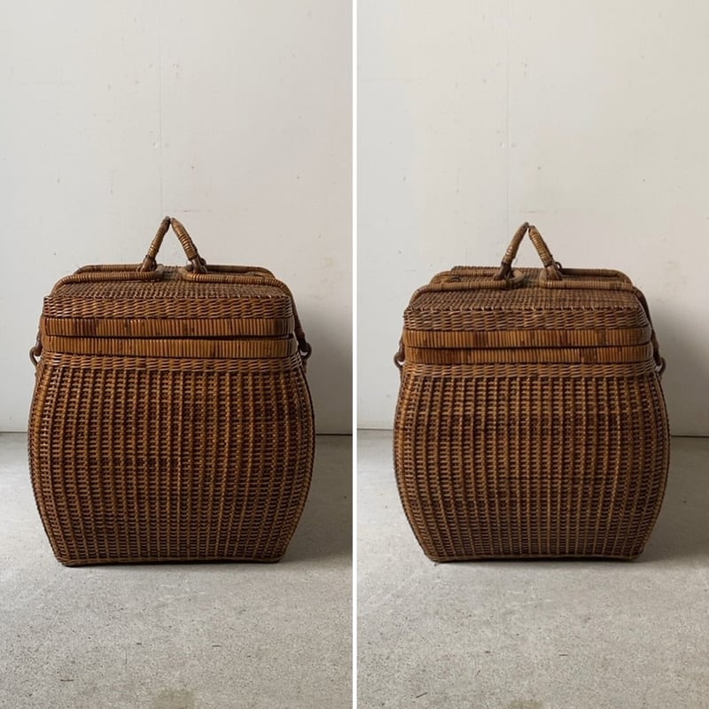 | 商品の特徴 | アンティーク茶籠 籐編みの蓋付きかご 46cm大きめ ヴィンテージラタン。古い日本製バスケット ラタン製 5ロック金具 籐巻き持ち手 ジャパン。送料無料】昭和レトロ バスケット 買い物かご かごバッグ アンティーク。年代は不明ですが、アンティークのラタンバスケットになります♪イギリス・フランスを扱うアンティークフェスタで購入しました。こういったラタンのバスケットが大好きで、少し高額だったので迷って迷って、やっぱり後悔しない様にと購入したものです。やっぱり時が経った素敵な物は魅力的でした⭐︎ラタンのお色も経年により飴色になっていて、とても雰囲気になっています^ ^私はレースやアンティークの布をしまい、見せる収納として棚に飾っておりました。ディスプレイアイテムとしてもとても素敵になります…♪コレクションが増えましたので、気に入って頂き大切にして頂ける方がいらっしゃったらお譲りしたいと思っております。どうぞこちらのお値段でお願い致します。ご了承ください。購入時から細かい経年の傷、汚れはあるかと思いますが、古い品物としては案外綺麗な方だと思います。アンティーク・ヴィンテージ品ならではの風合いにご理解のある方、どうぞよろしくお願い致します^ ^見落とし部分があるかもしれませんがご了承ください。新品ではありません、色々と細かく気になる方はご遠慮ください。※バスケット以外はイメージです。大体のサイズ高さ 17cm横幅 29cm奥行 22cmプロフィールよろしければご覧ください^_^。ヴィンテージ ラタントランク46cm ピクニックバスケット 籐編みのかご。日本製 【Made in Japan】木製ジュエルケース3ツ引○国産。パリ雑貨屋 アンティーク小物入れ メイクボックス。◆限定1個◆高品質 玉石彫刻 とうもろこし コレクション 送料無料 本物保証。木製置物。菊花石 鑑賞石 天然石 自然石。非売品☆入手困難ドンペリクーラー。アクセサリー 蓋つき 黒胡桃材製蓋付き小物収納ボックス。小物入れ ART DECO vintage WFace。[値下げ可]健康・長寿の源泉 岩盤浴マット | ||