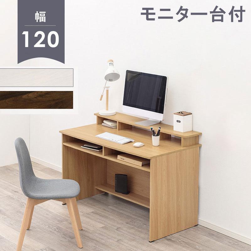 - 机・テーブル > 事務机・学習机 > パソコンデスク モニター台付き幅120✕奥行60 cm シンプル デスク パソコンデスク 幅120cm モニター台付き PCデスク 書斎デスク 机